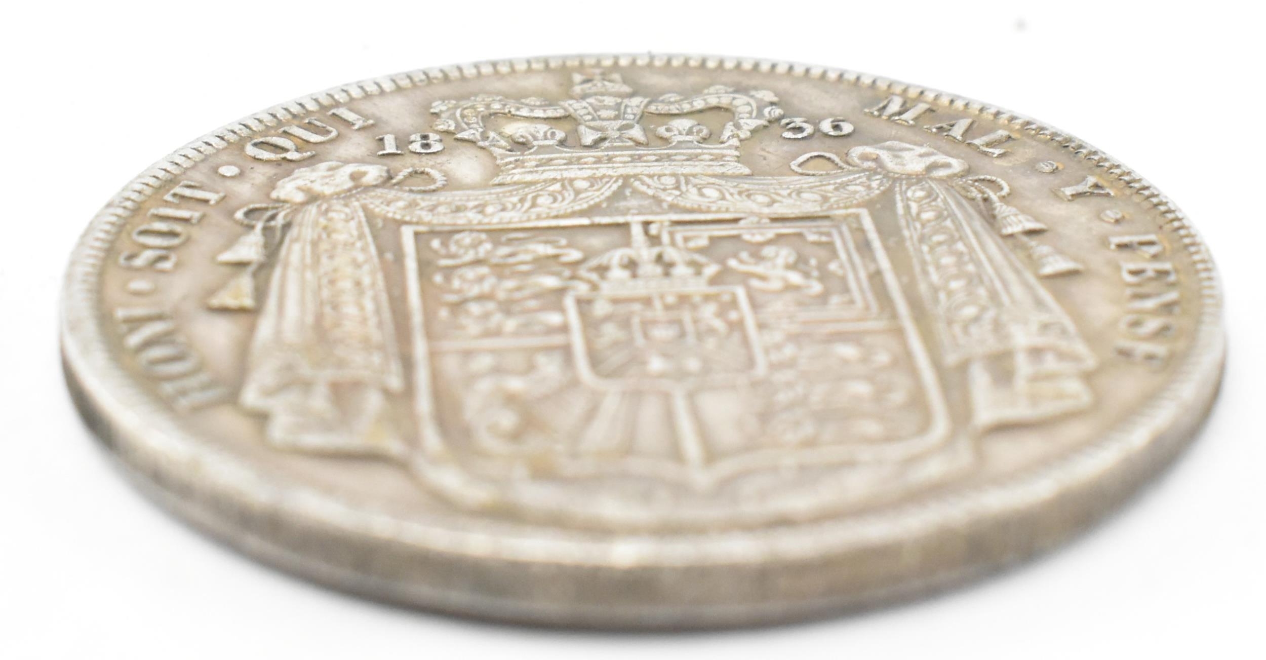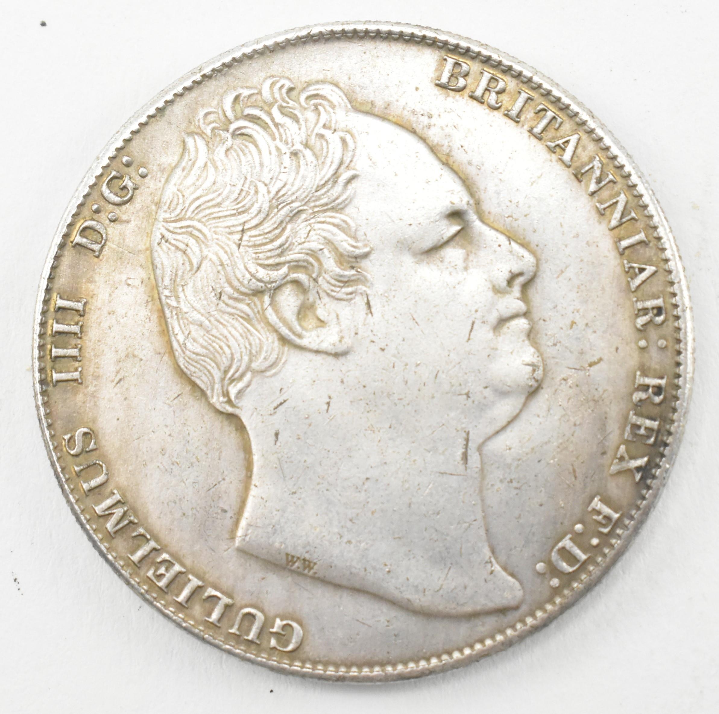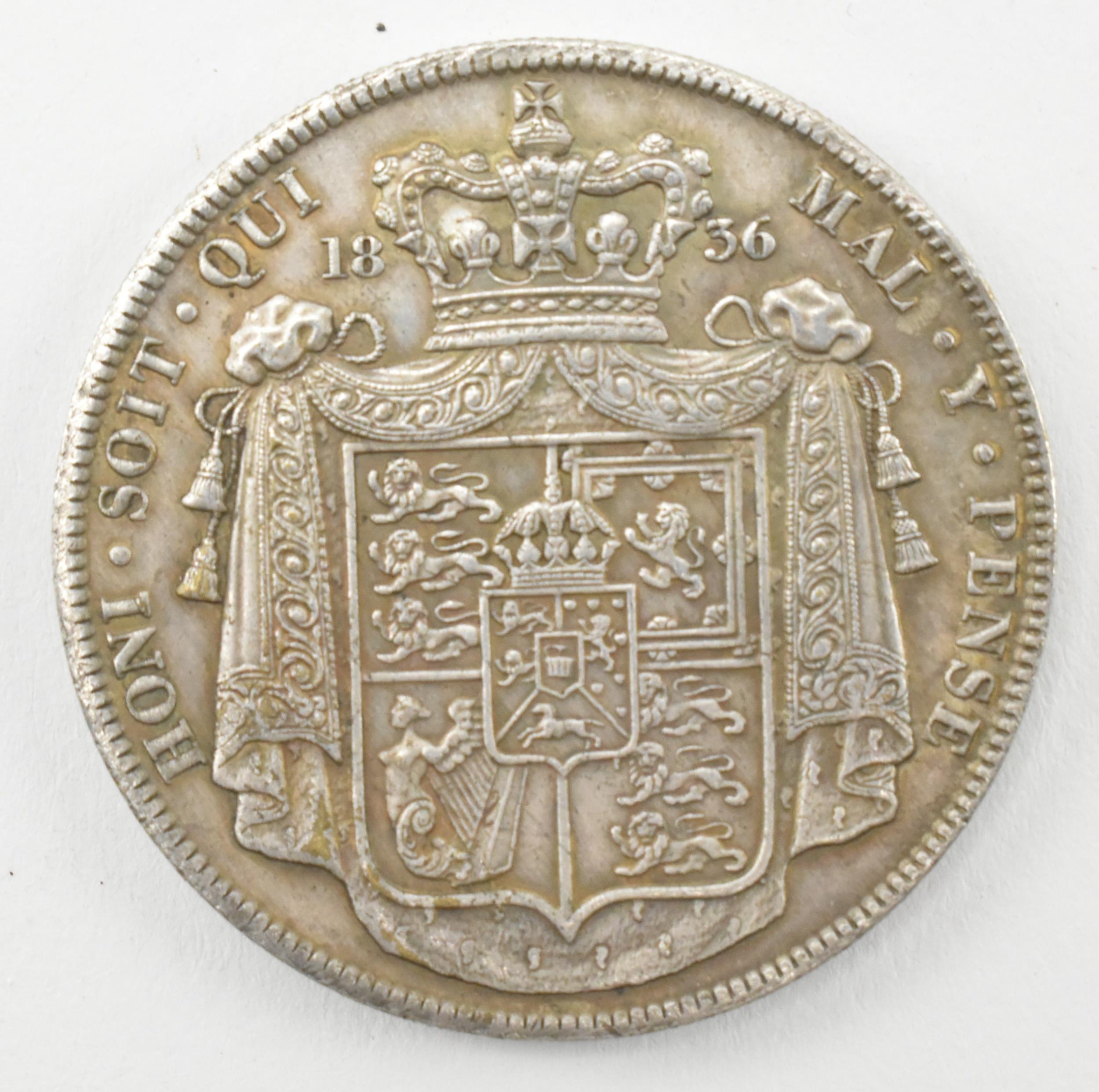 WITHDRAWN - A 1836 William IV silver crown coin. The coin obverse with Bare William IV facing right. WW in script on the truncation with inscription reading: GULIELMVS IIII D: G: BRITANNIAR REX F: D:. The reverse with Shield on mantle, crowned. Measures approx. 37mm in diameter. Weighs approx. 23.42gr.