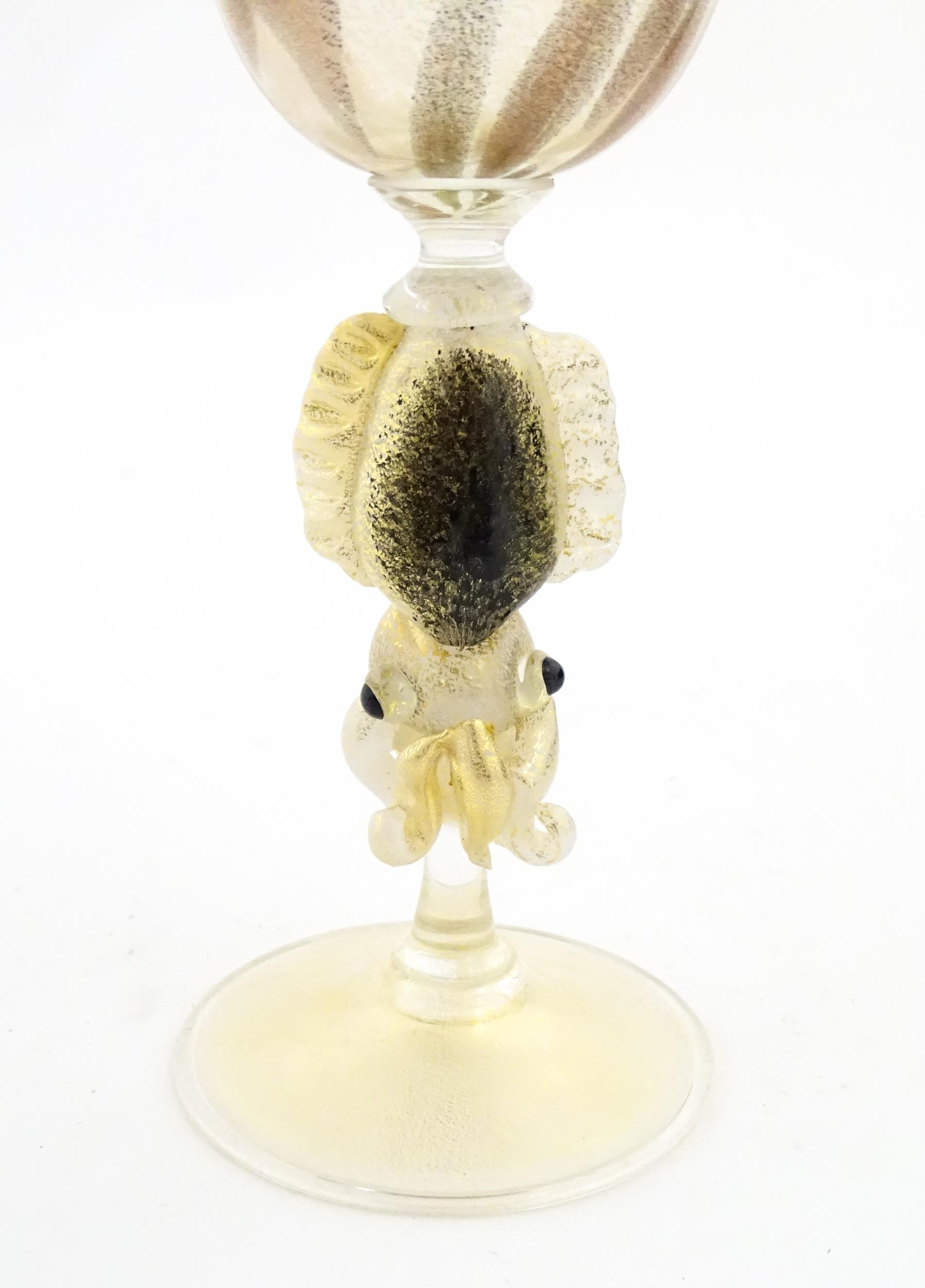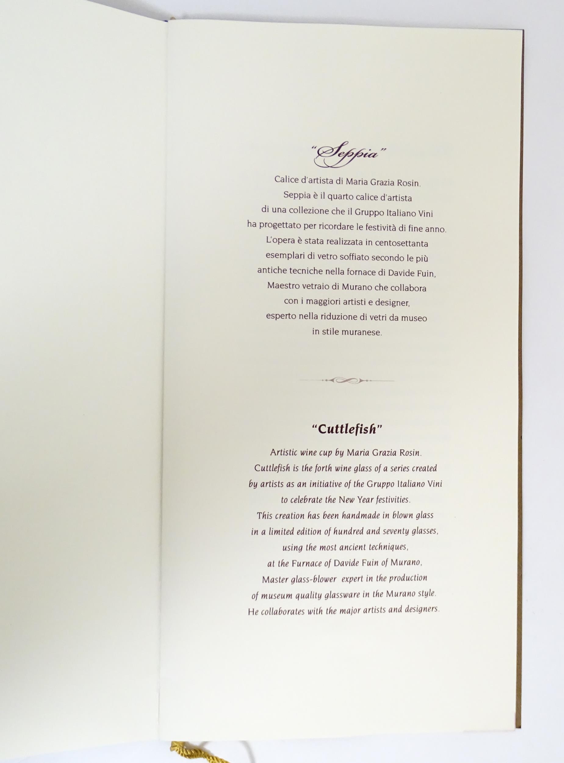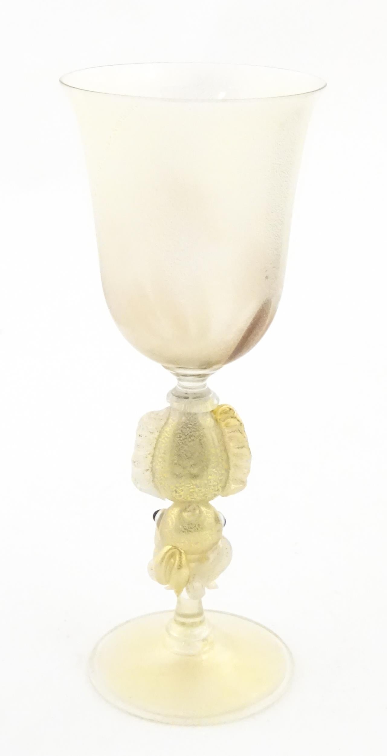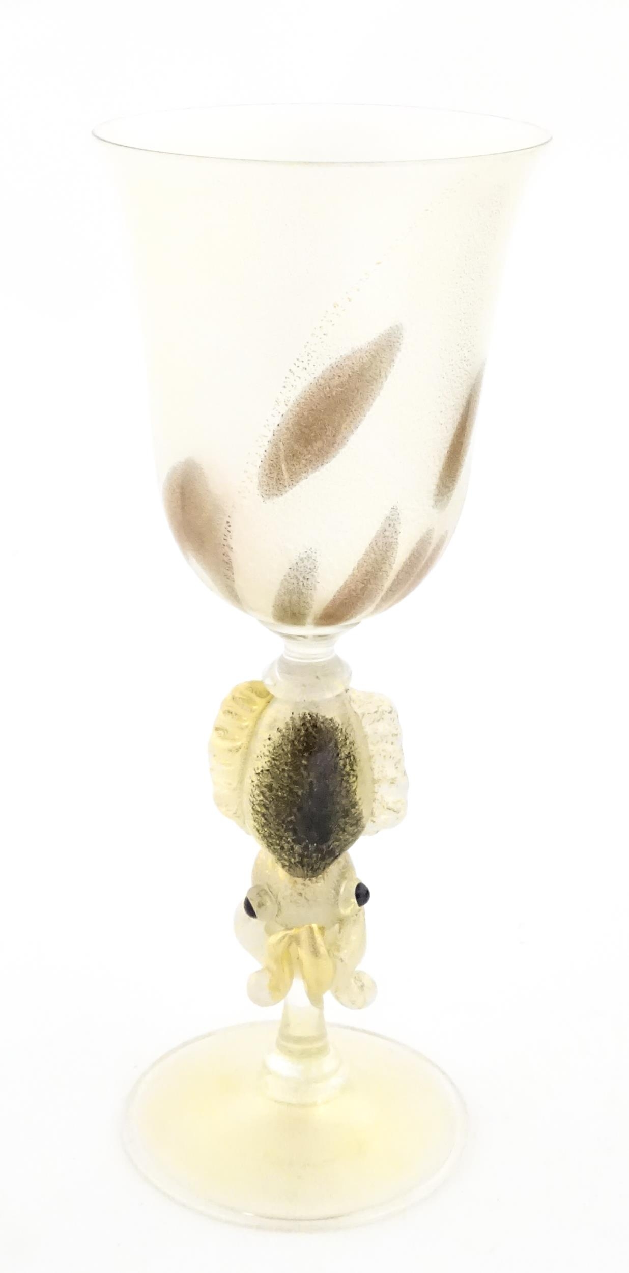 An Italian Maria Grazia Rosin 'Cuttlefish' blown glass wine glass with fish detail to stem. Boxed. Approx. 9 1/4" high