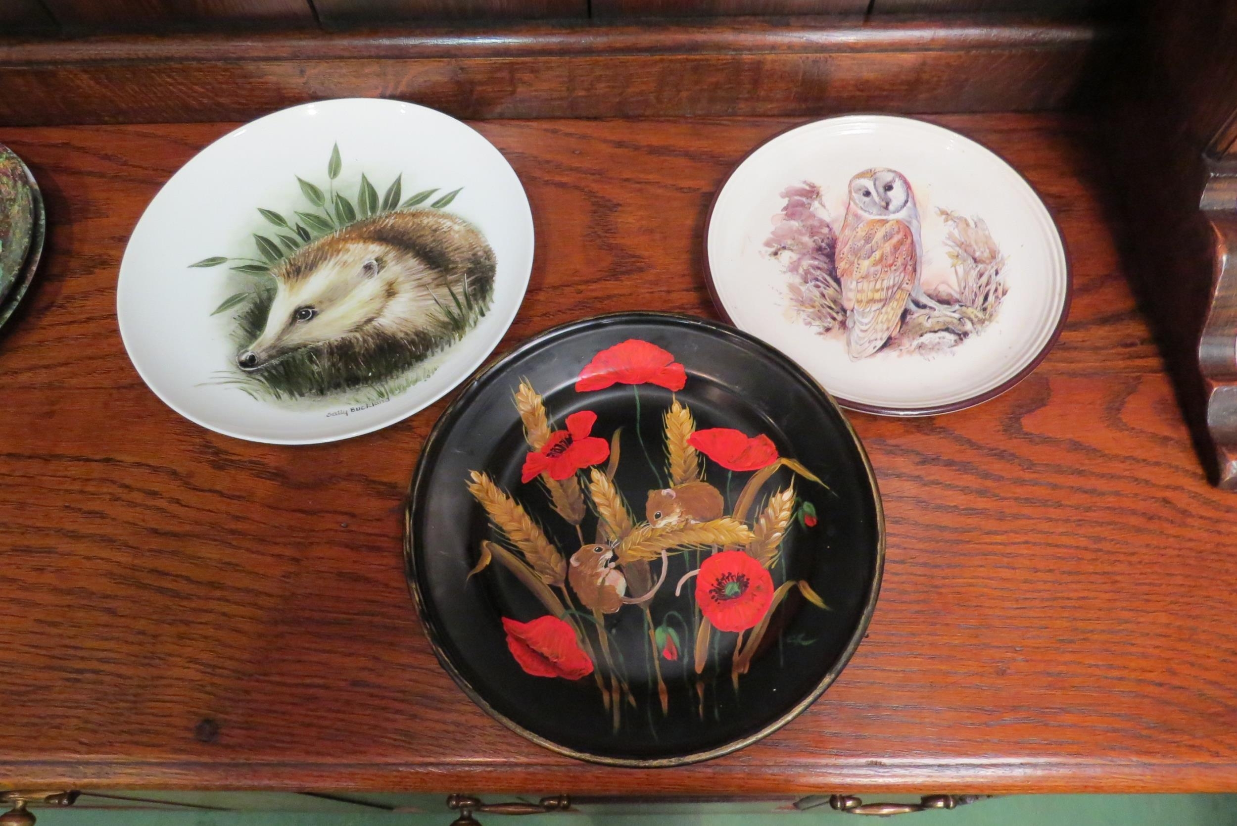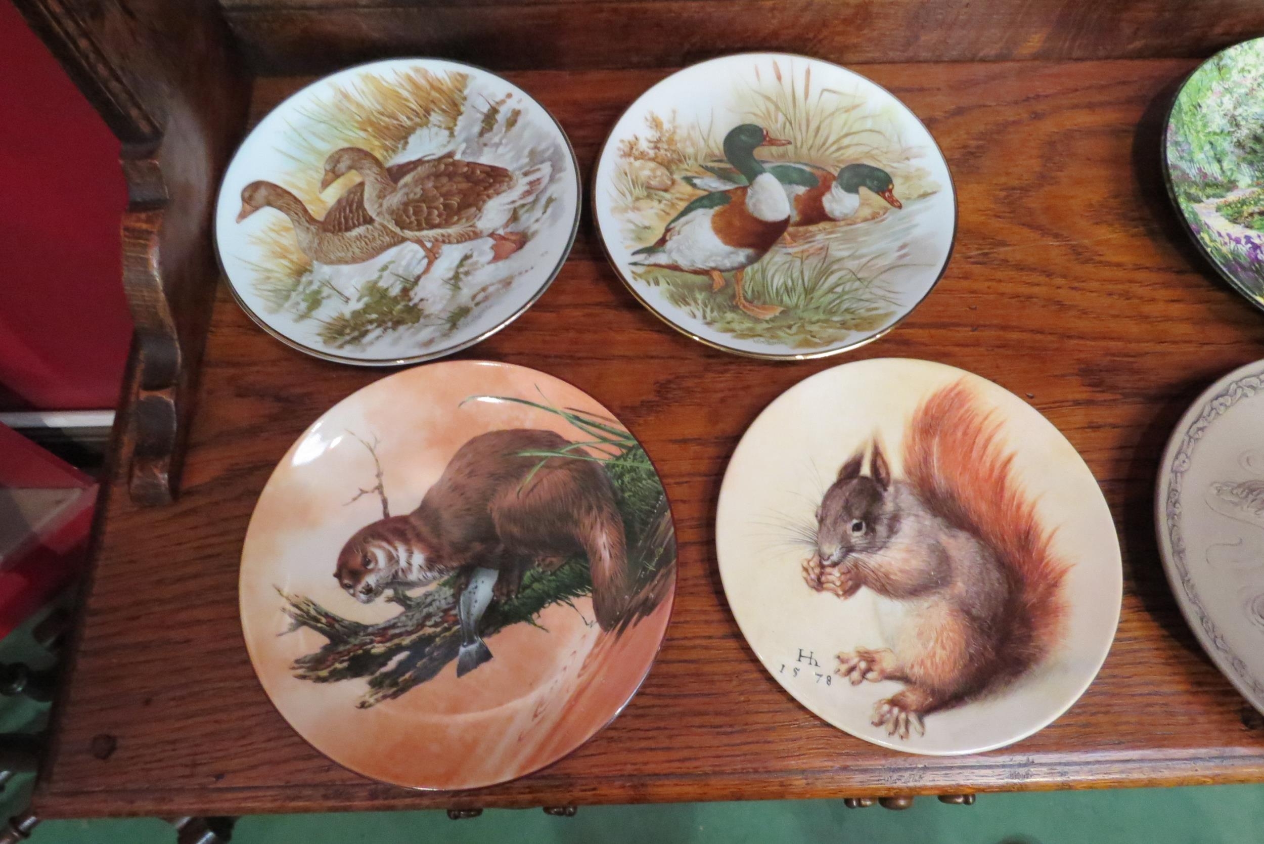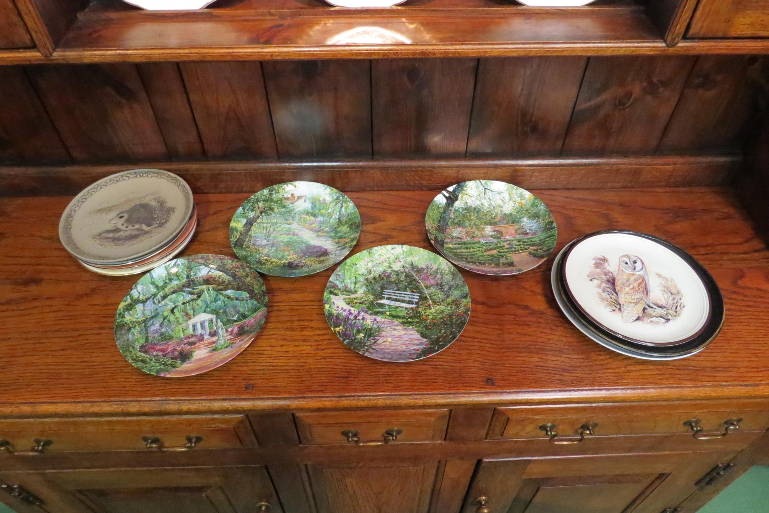 Four Bradex collectors plates depicting garden scenes and eight further plates. Seven Wedgwood collectors plates depicting rural scenes and eight Royal Doulton plates depicting wildlife. A pair of Seltmann Weiden ceramic wall plaques of circular form, "Jahresteller Kornernte" and "Jahresteller Kartoffelernte", 25cm diameter (29)