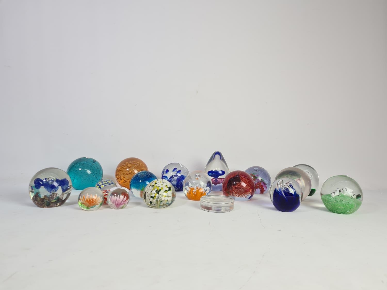 Nineteen various art glass paperweights to include one Caithness Escapade, one Caithness Vortice etc.