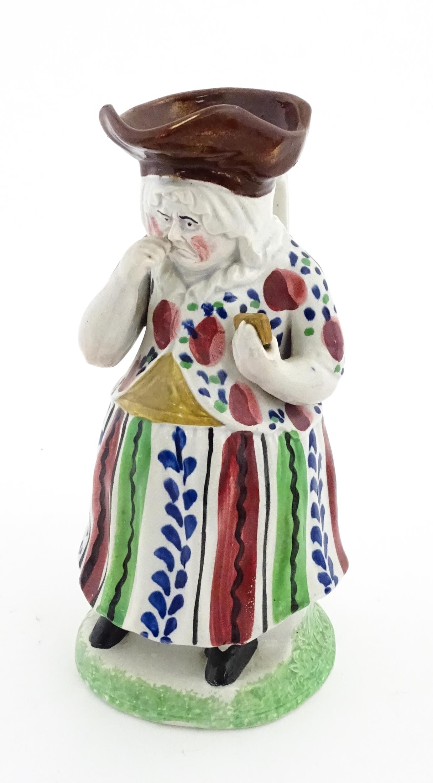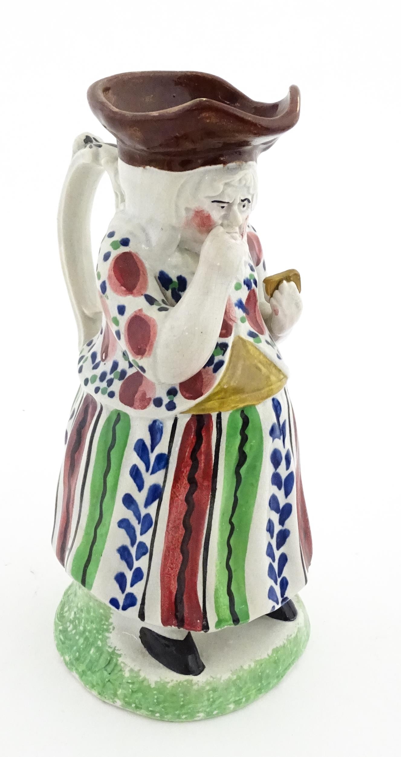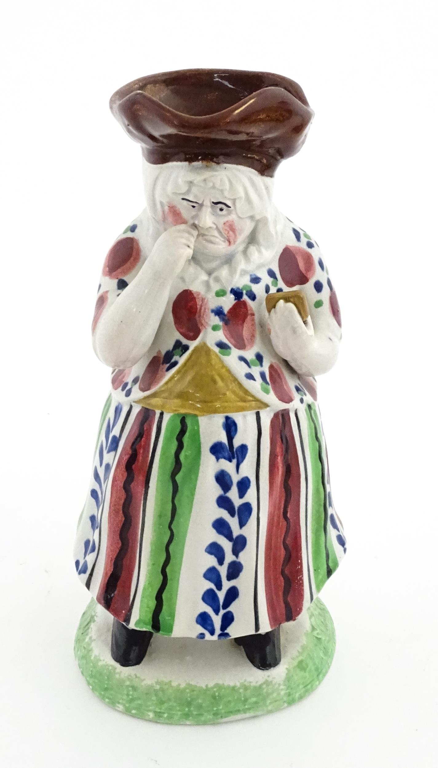 A Staffordshire pottery Lady Snuff Taker Toby jug. Approx. 9 3/4" high