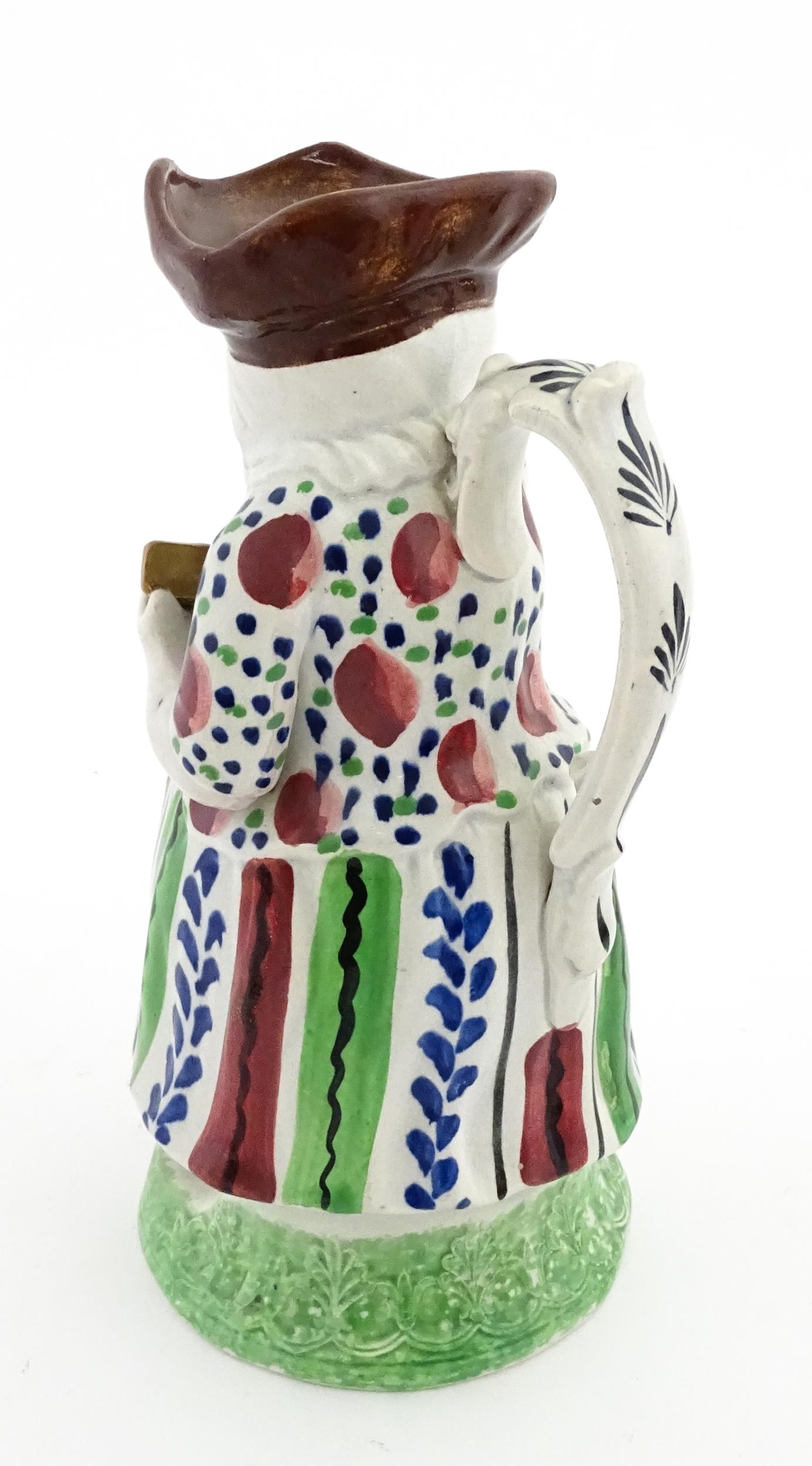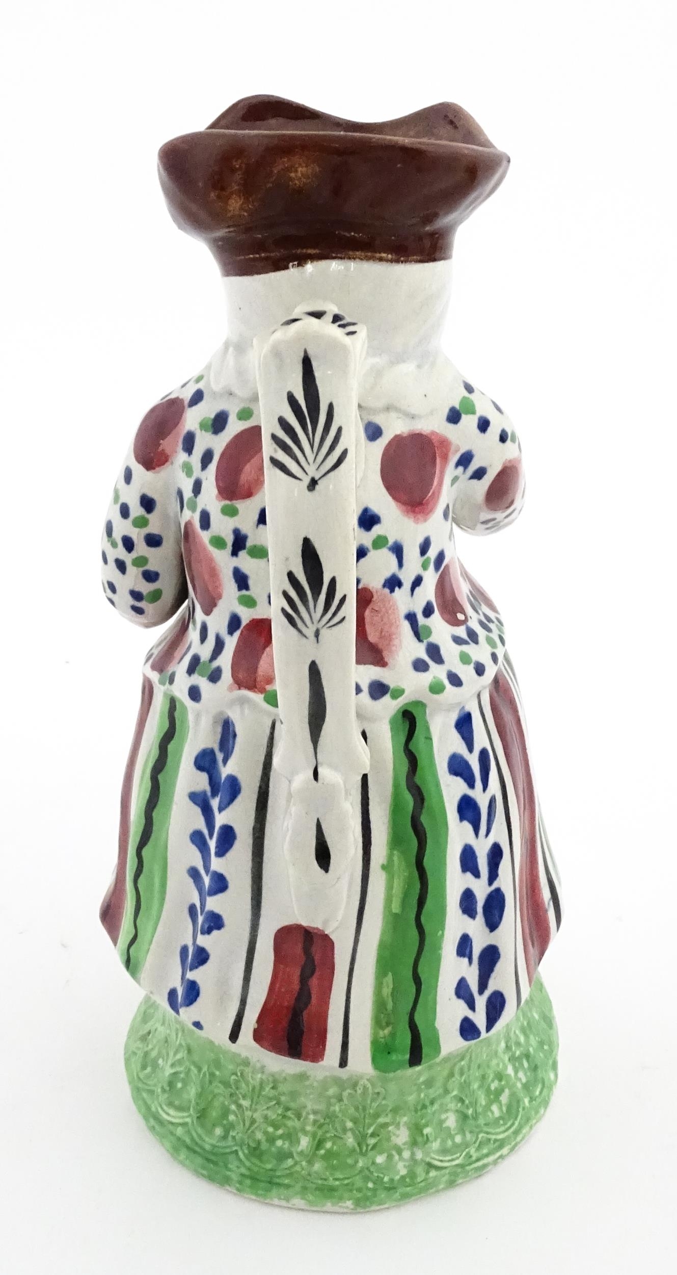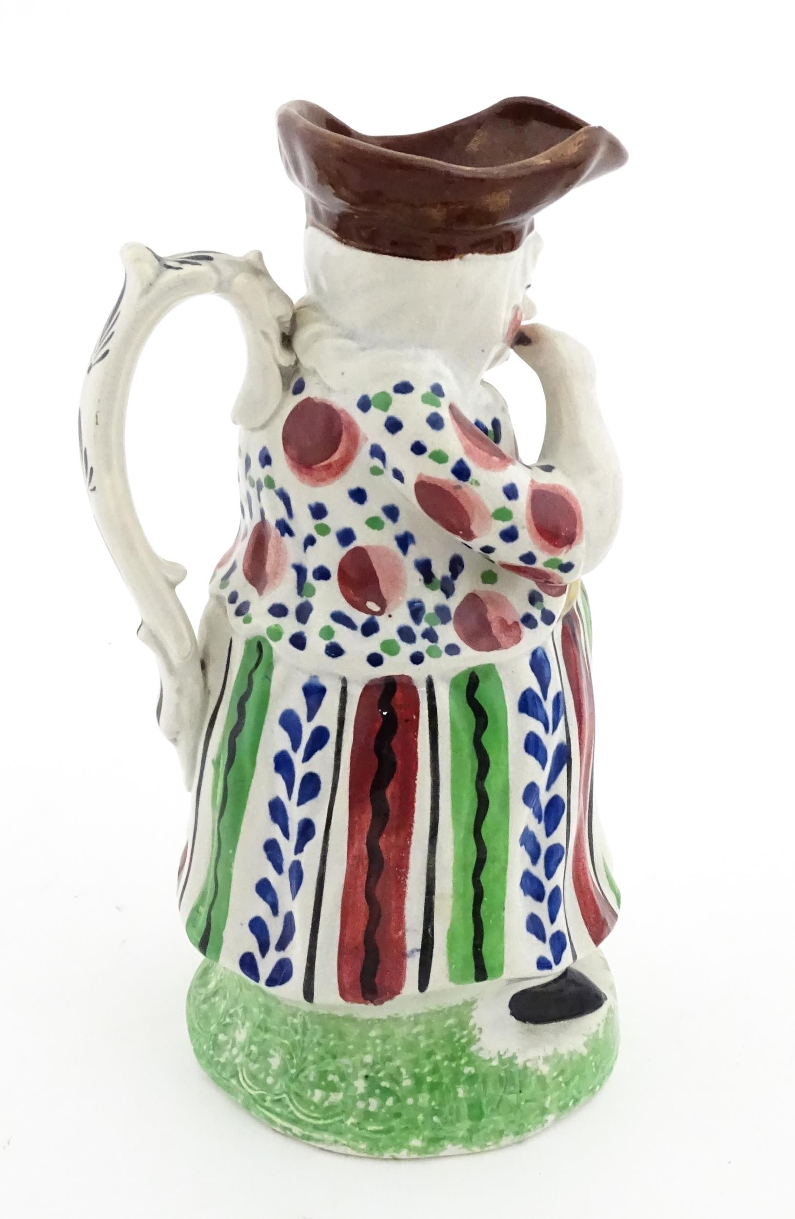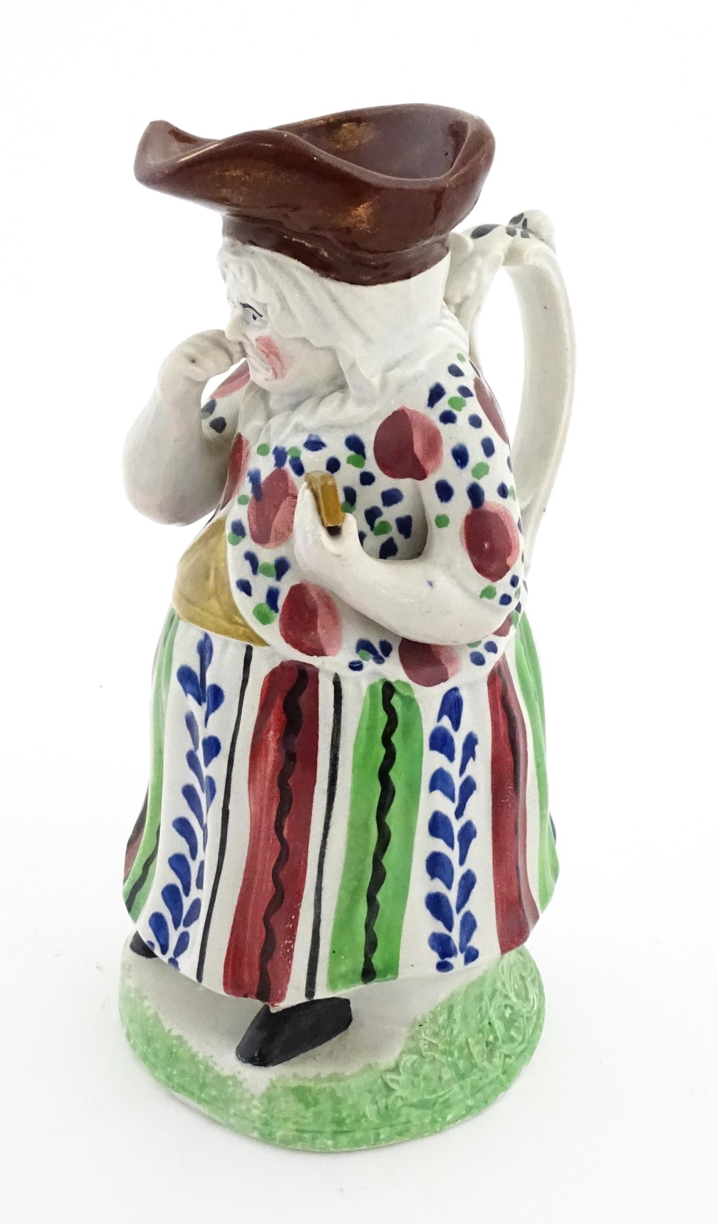 A Staffordshire pottery Lady Snuff Taker Toby jug. Approx. 9 3/4" high