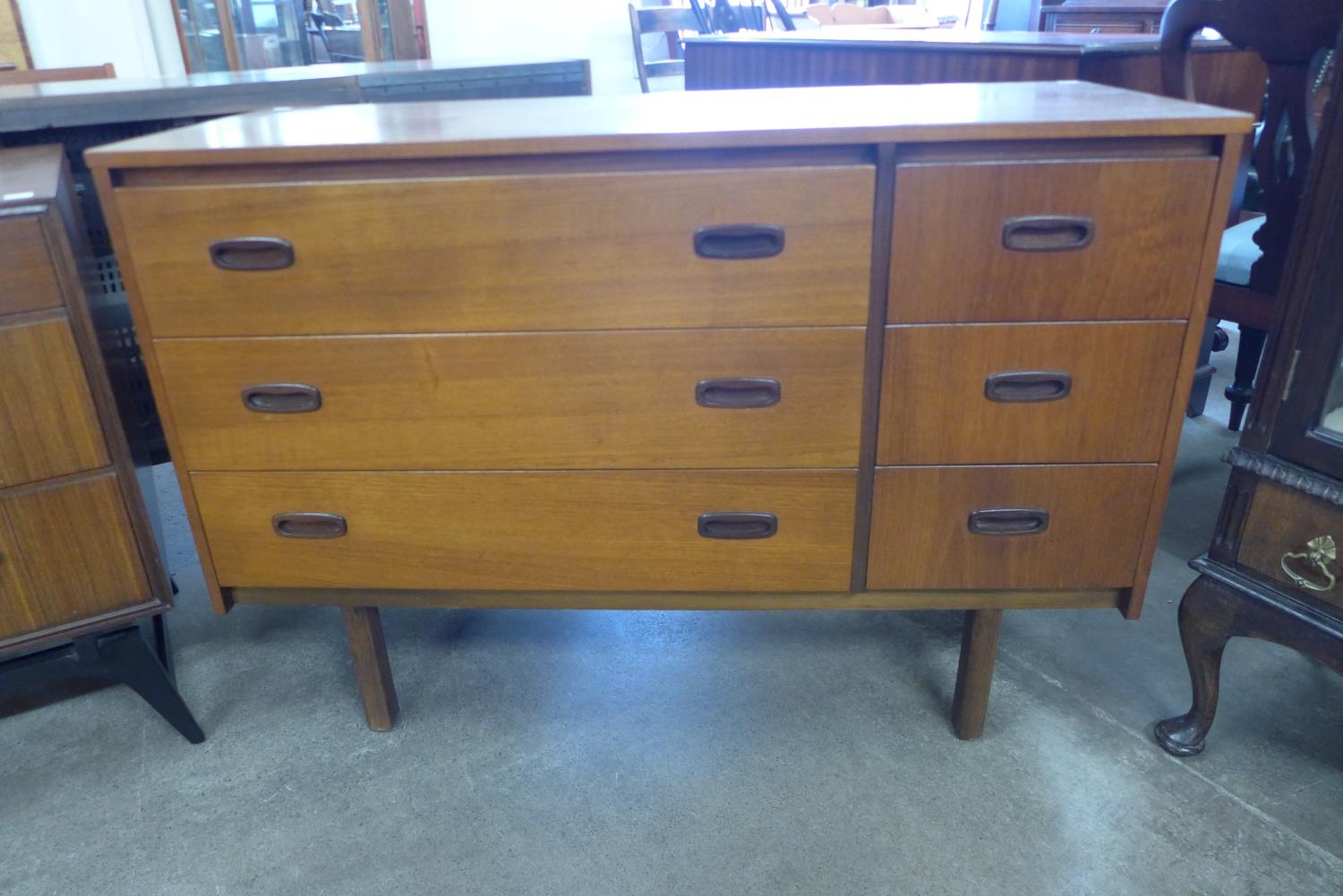 A teak chest of drawers