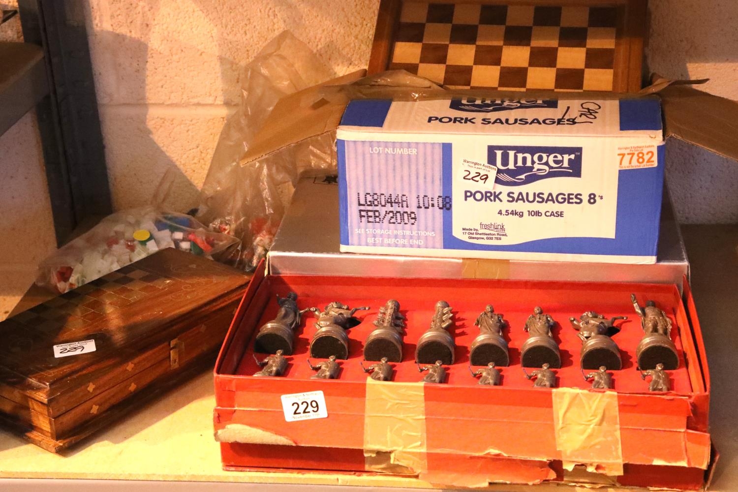 Selection of mainly boxed chess sets, some collectors series, mostly resin chess pieces and other boxed games. Not available for in-house P&P