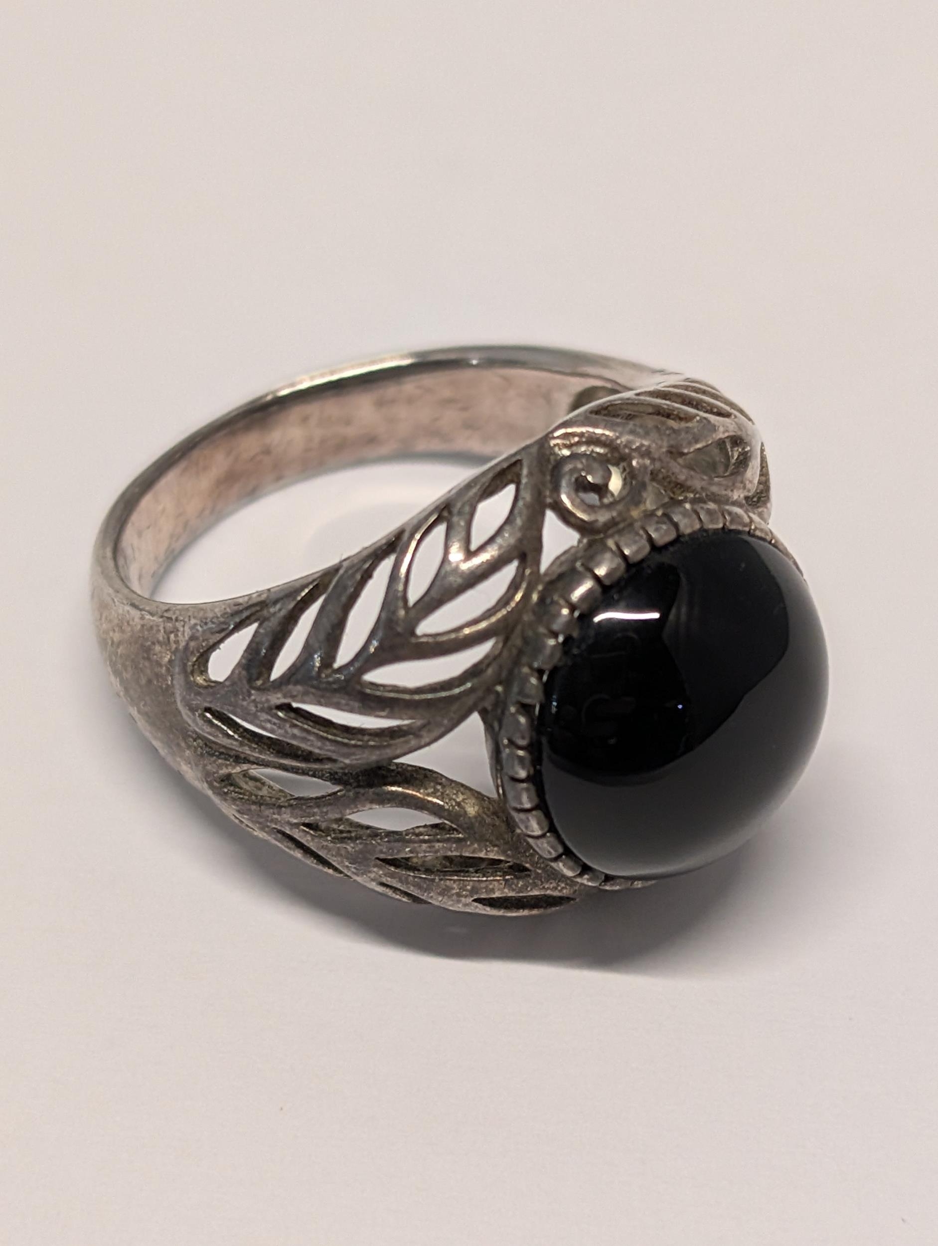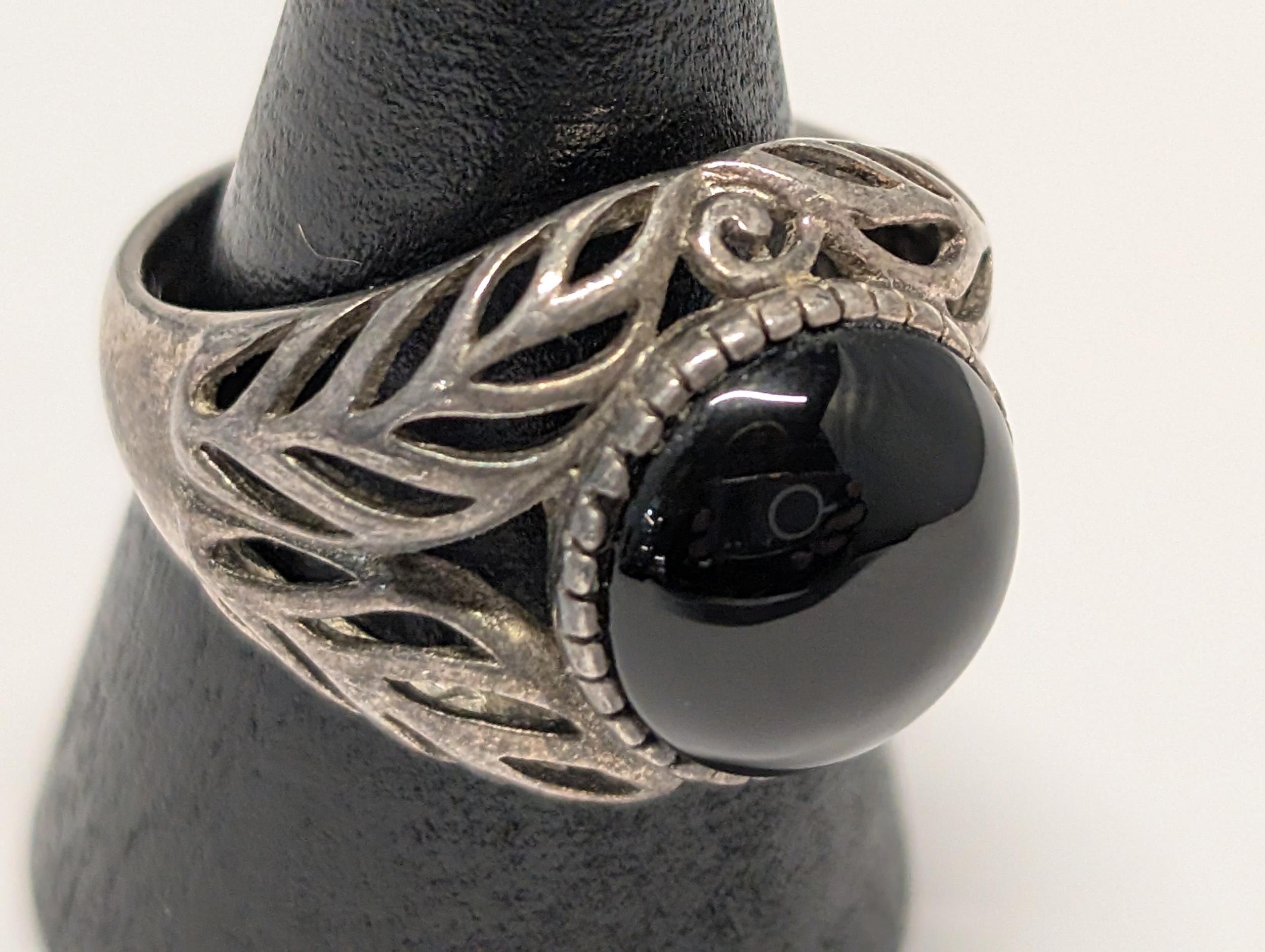 Sterling Silver and Onyx Ring with Foliate Openwork