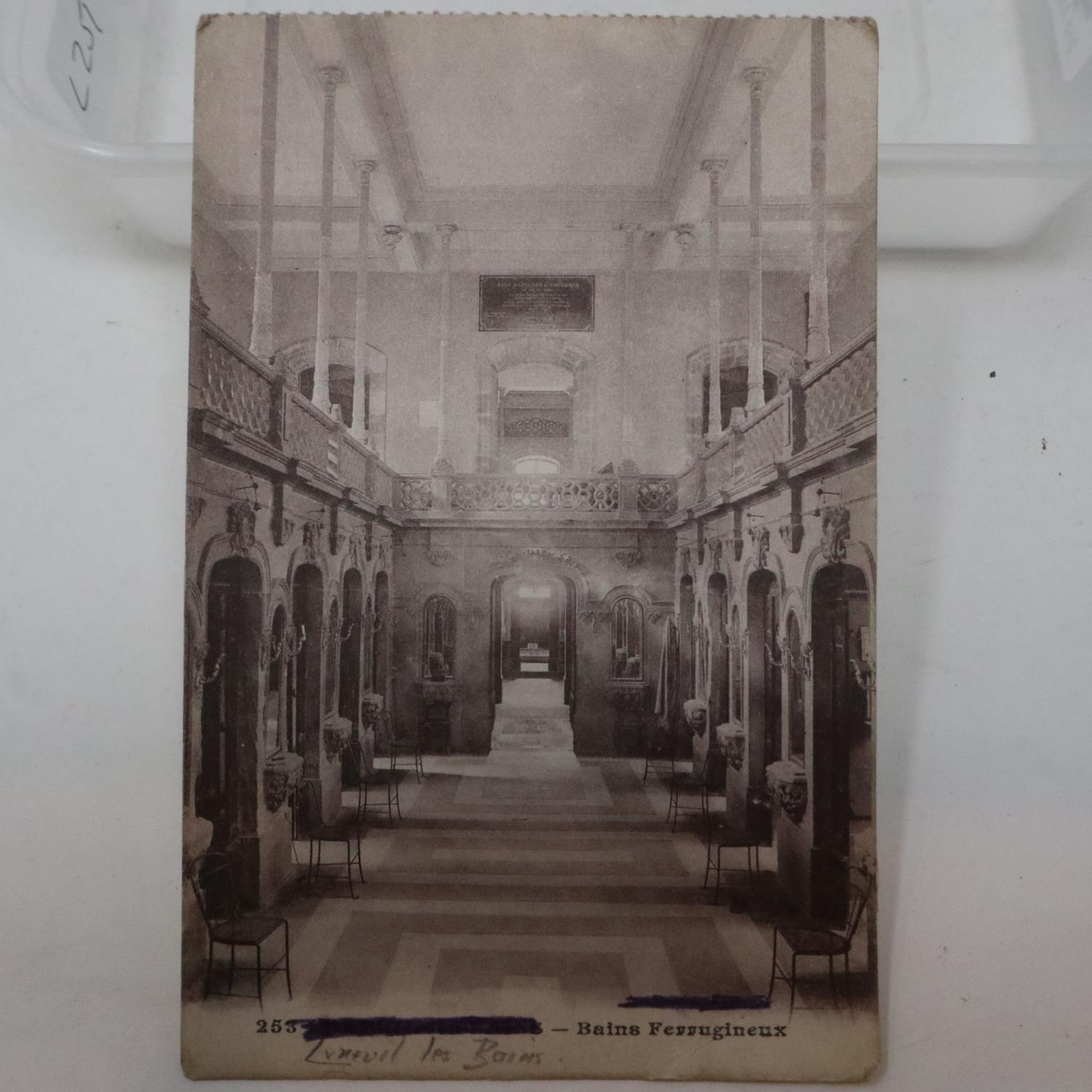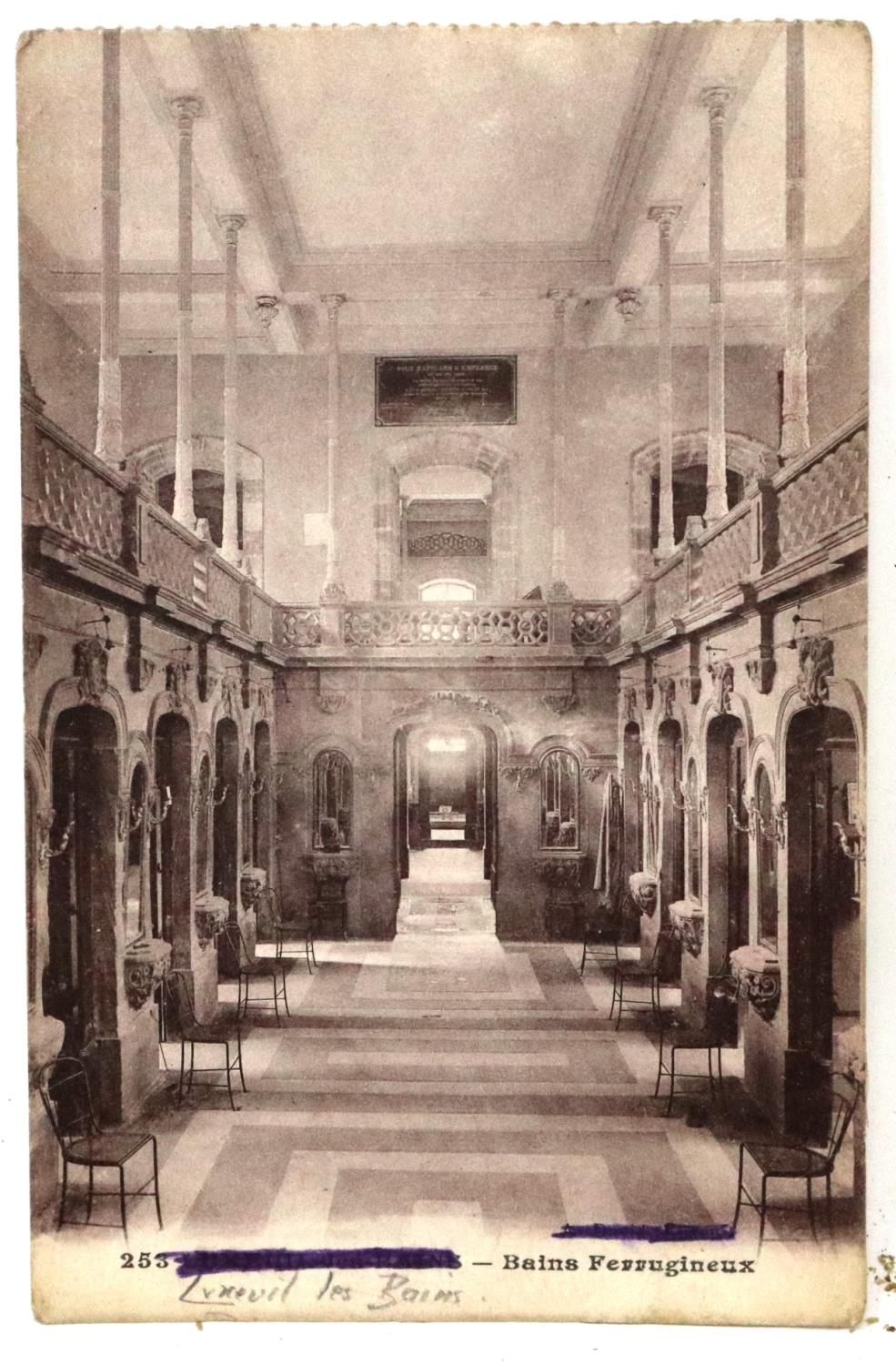 Royal Naval Air Service No 3 Wing stamped postcard depicting the baths at Luxeuil. Luxeuil Des Bains was the town in which No3 Wing were based from June 1916. UK P&P Group 1 (£16+VAT for the first lot and £2+VAT for subsequent lots)