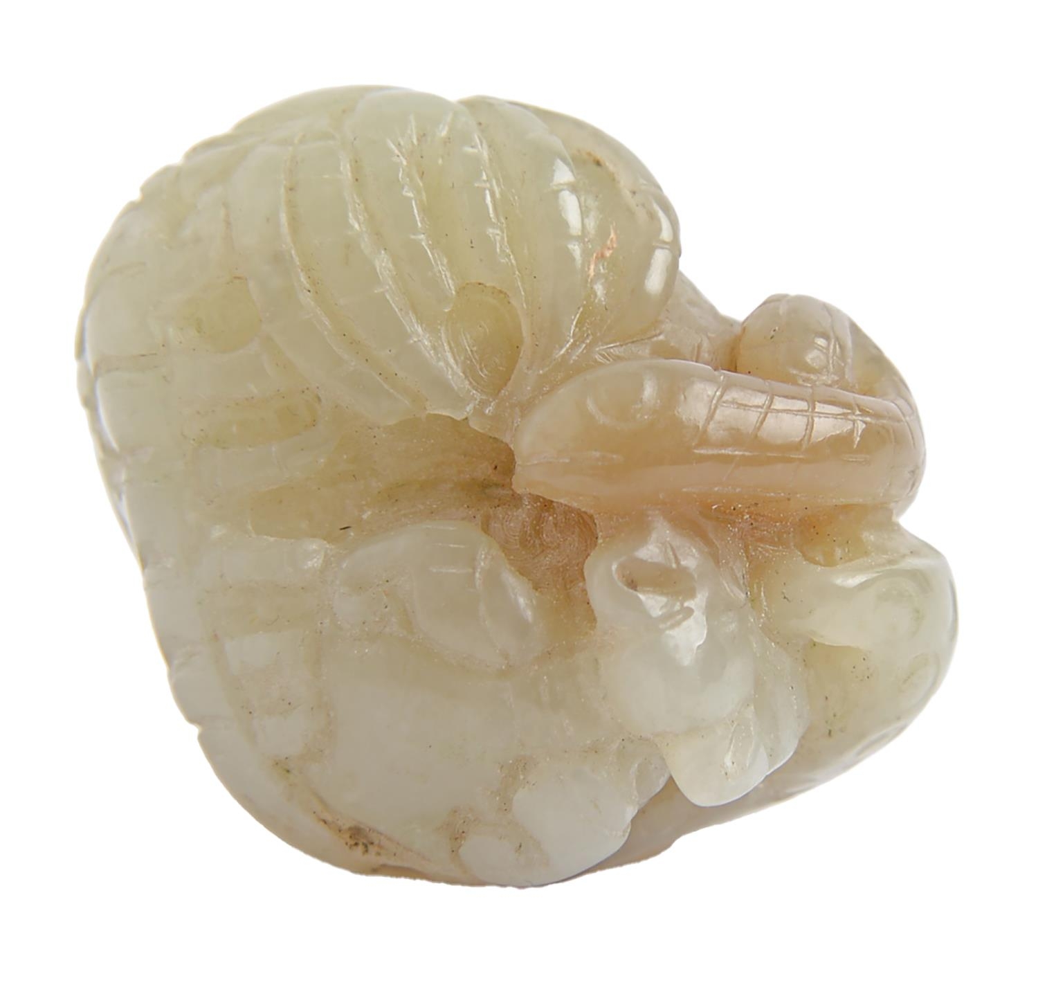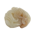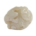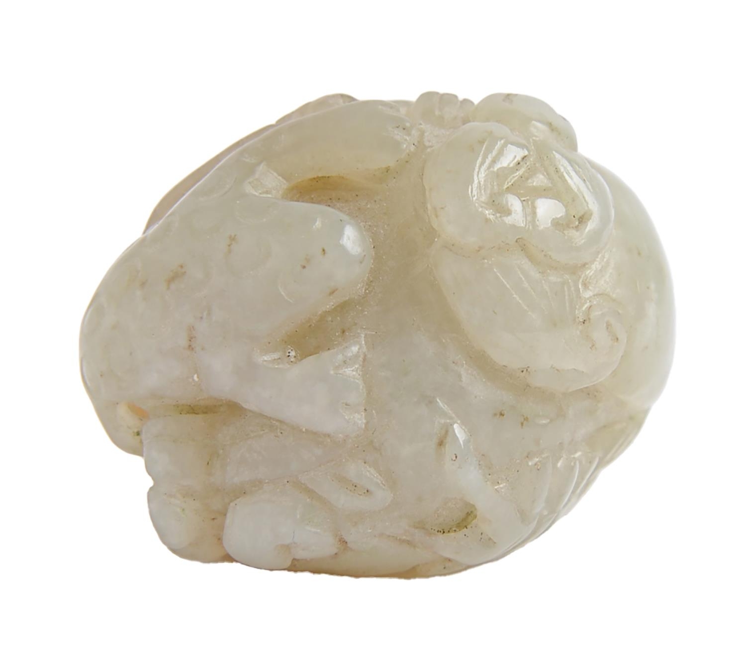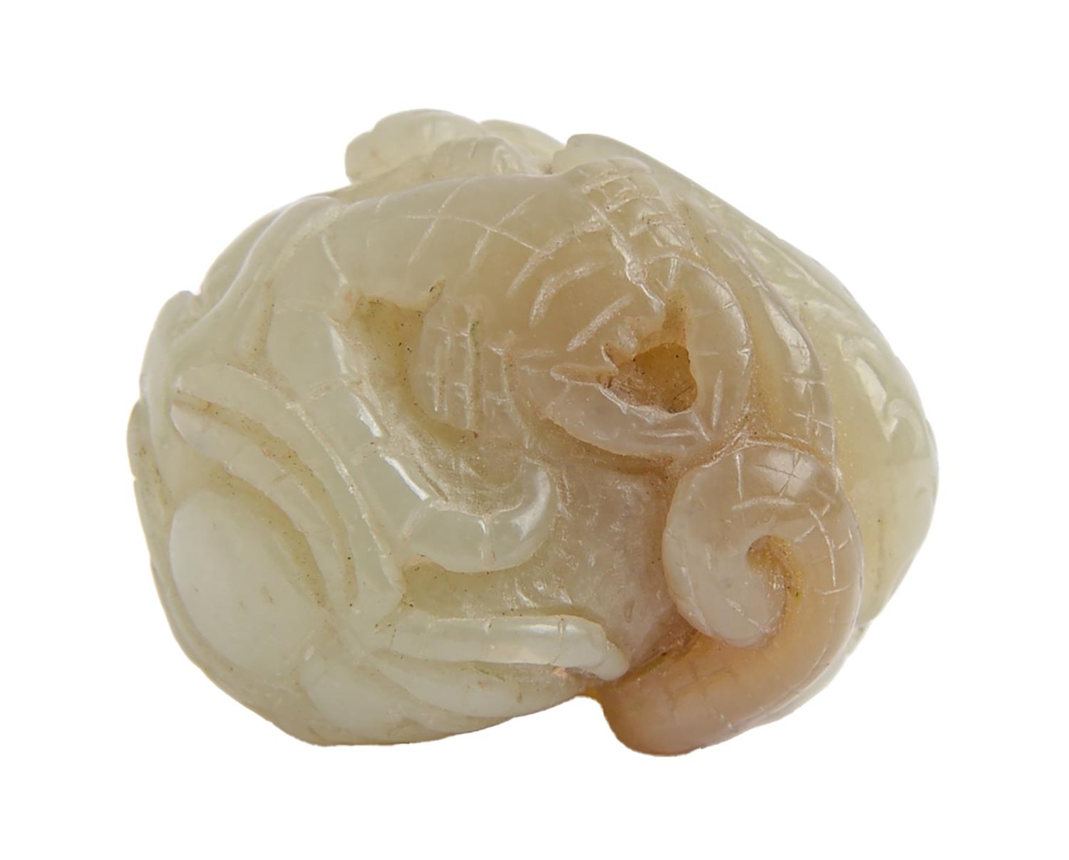 A Chinese jade pebble carving, with a dog of Fo, toad and snake, 44mm l