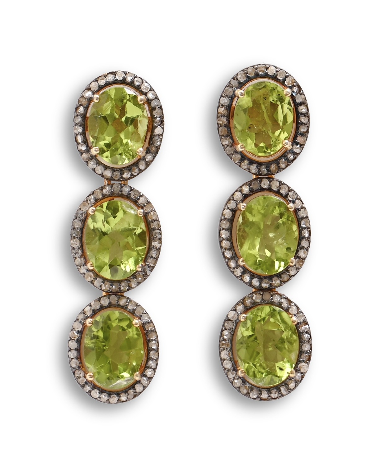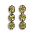 A pair of peridot and diamond triple cluster earrings, in silver gilt, fully articulated, 37mm h, 10.4g
