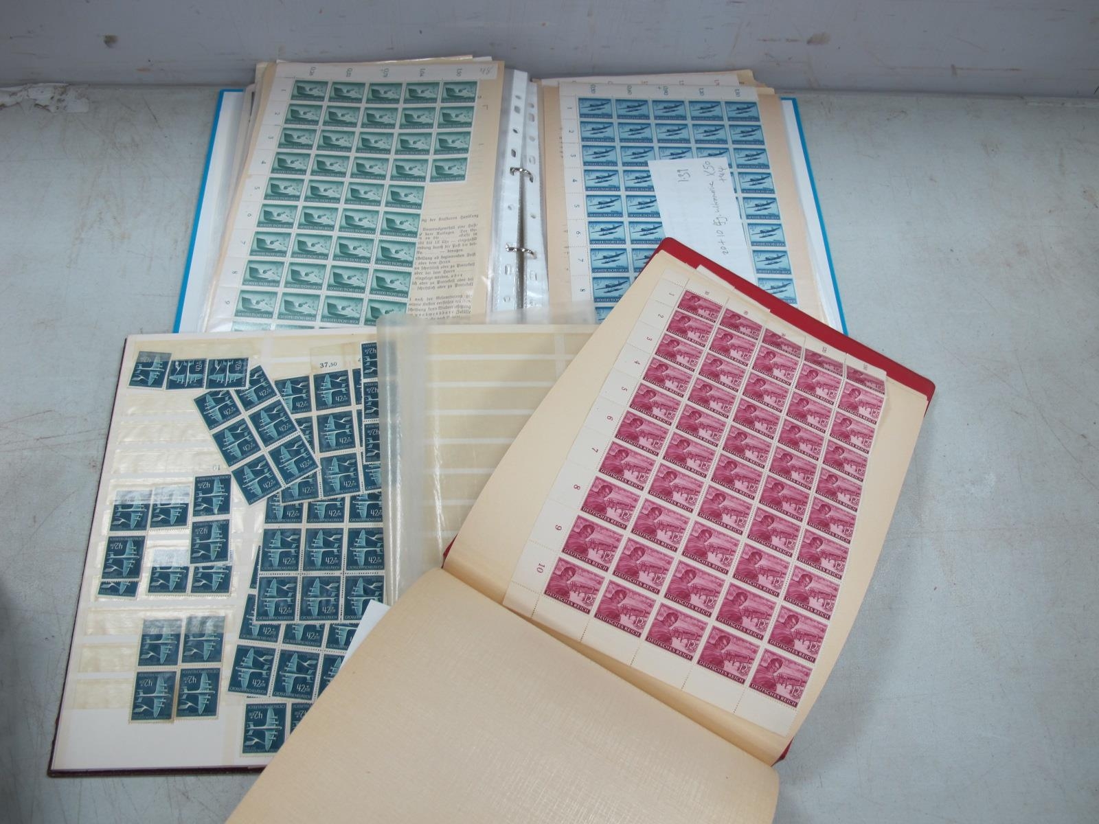 Stamps; Three Albums containing part sheets, blocks, multiples of German stamps from the third reich period.