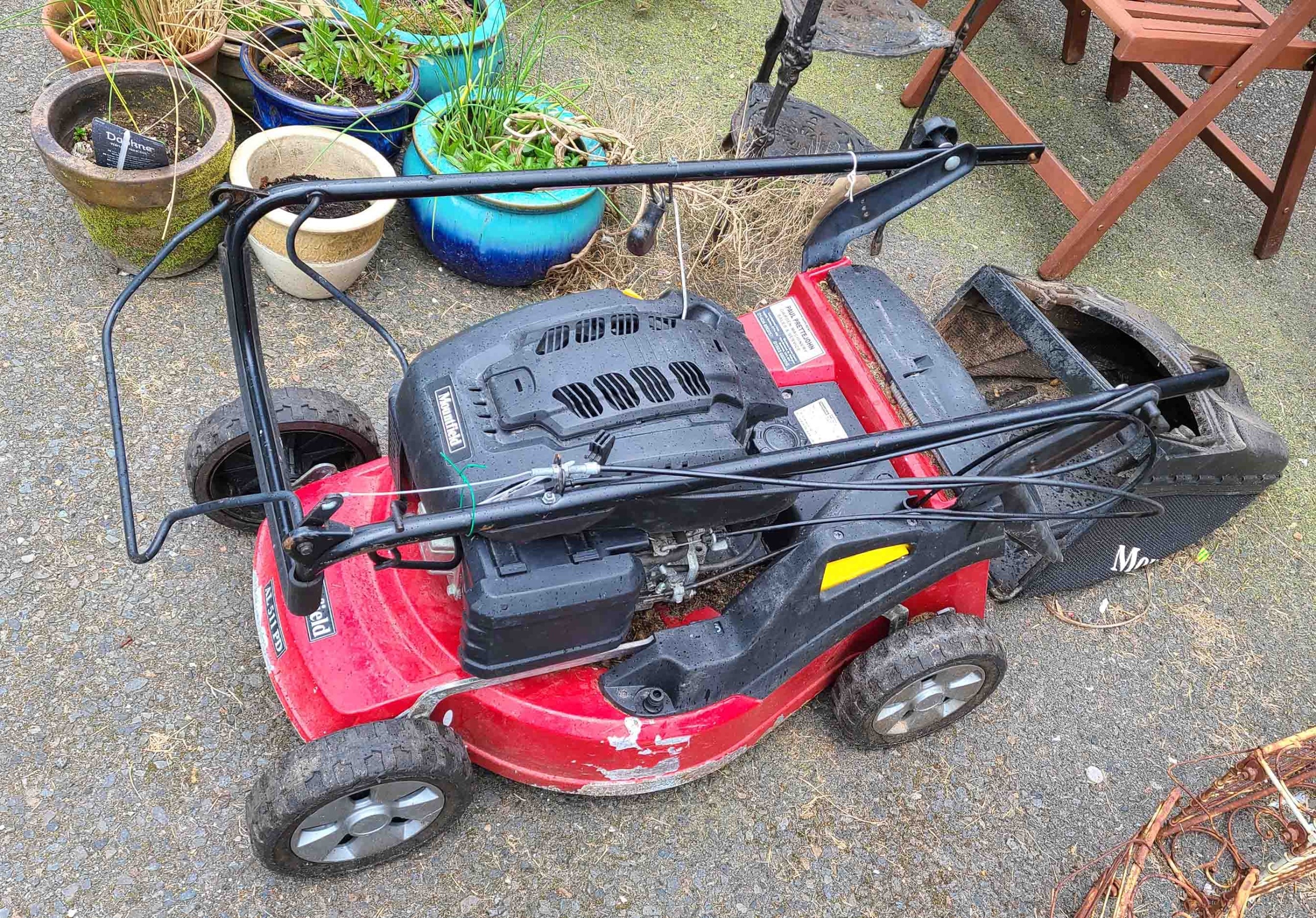 A Mountfield 'ALSIIPD' petrol lawn mower with grass box