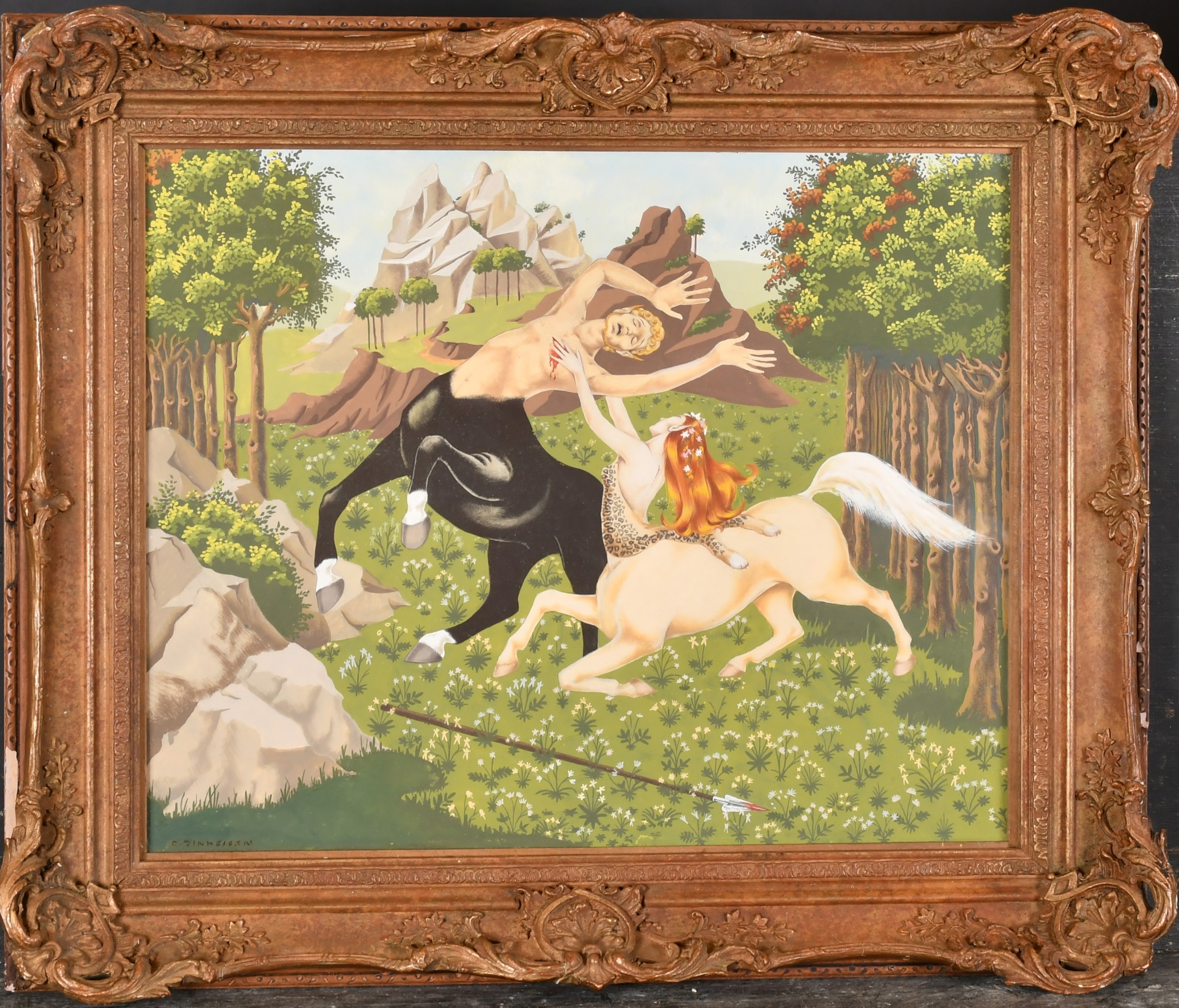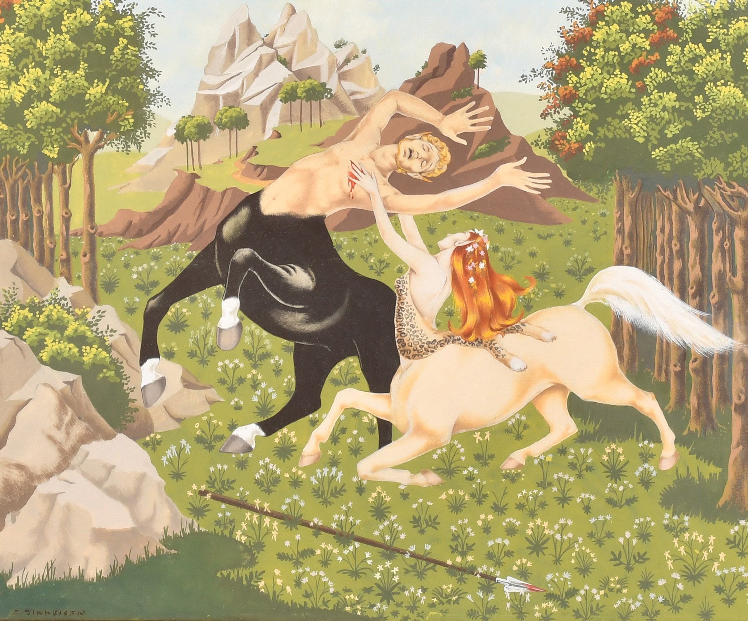 Doris Clare Zinkeisen (1898-1991) British. "The Death of Cyllarus and Hylonome", Gouache, Signed, and inscribed verso, 15.25" x 18" (38.7 x 45.7cm)