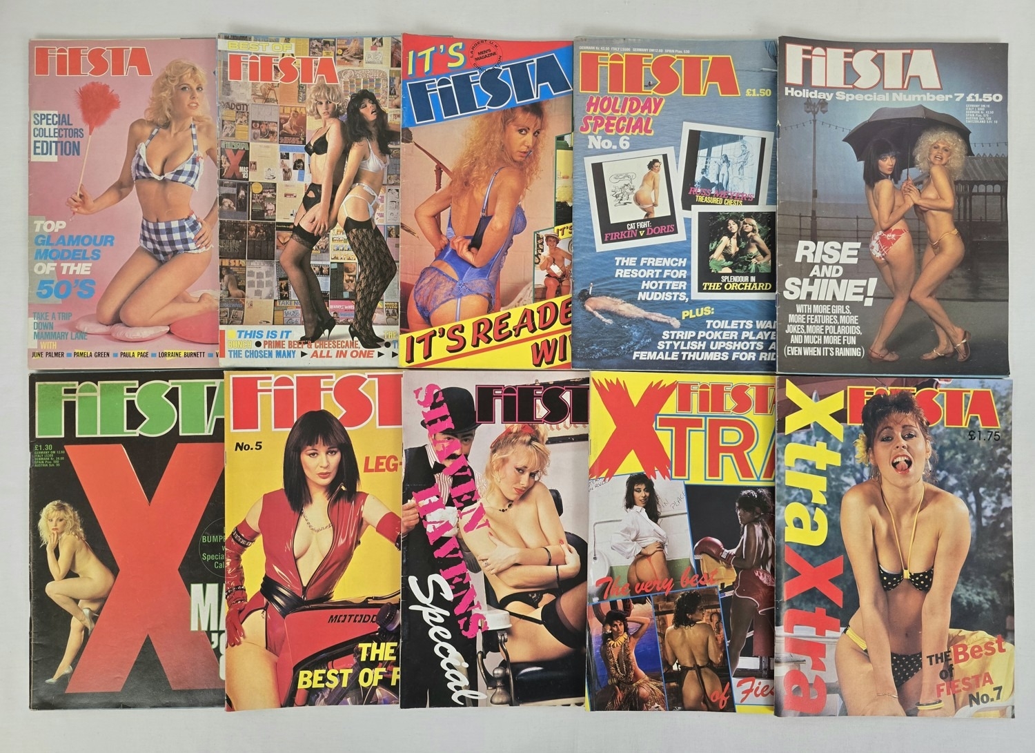 10 assorted vintage 1980's special issues of Fiesta, adult erotic magazine, to include Best of, Readers' Wives, Shaven Havens and Fiesta Xtra.