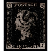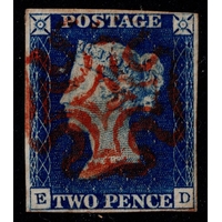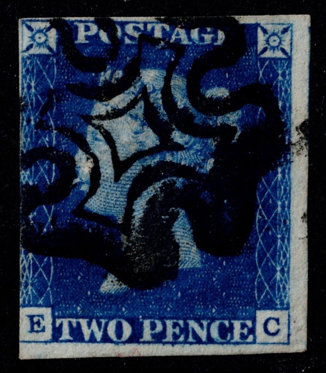 GB 1840 2d blue plate 1 EC f/vfu near 4m with fine black maltese cross sg5 Cat. £975