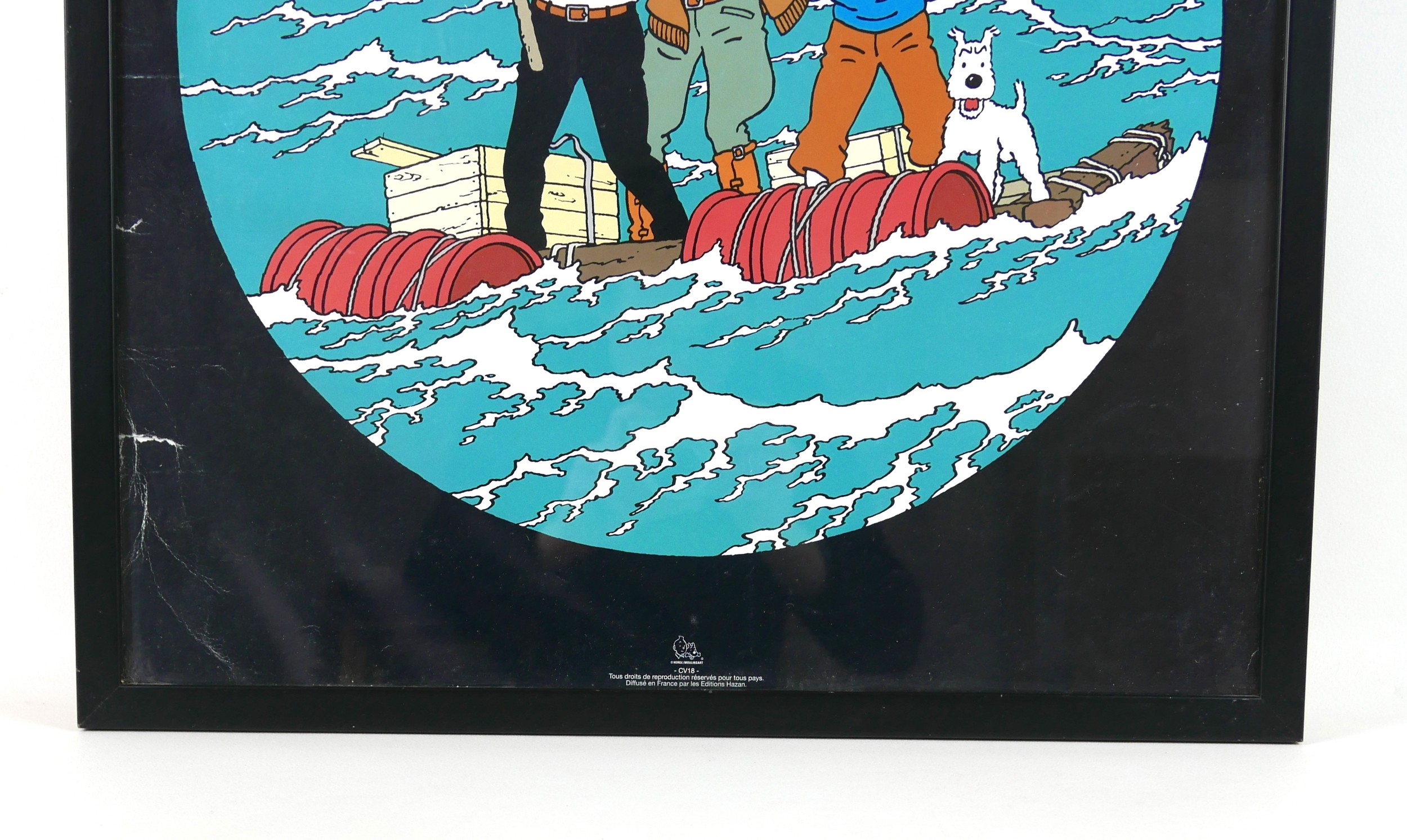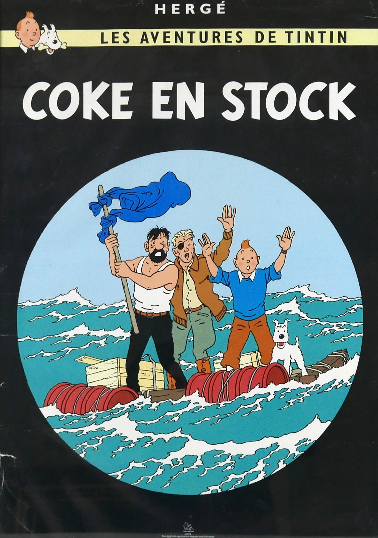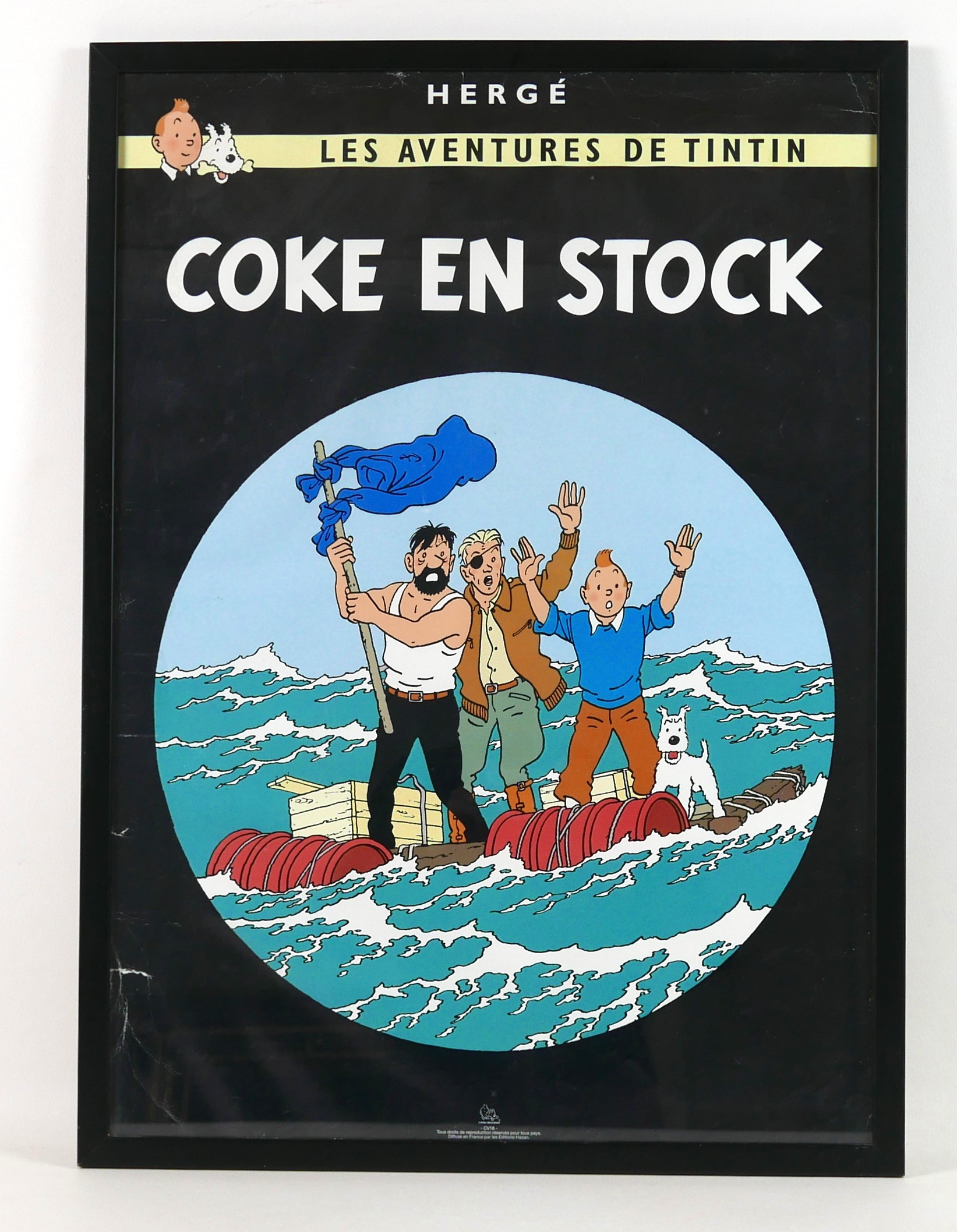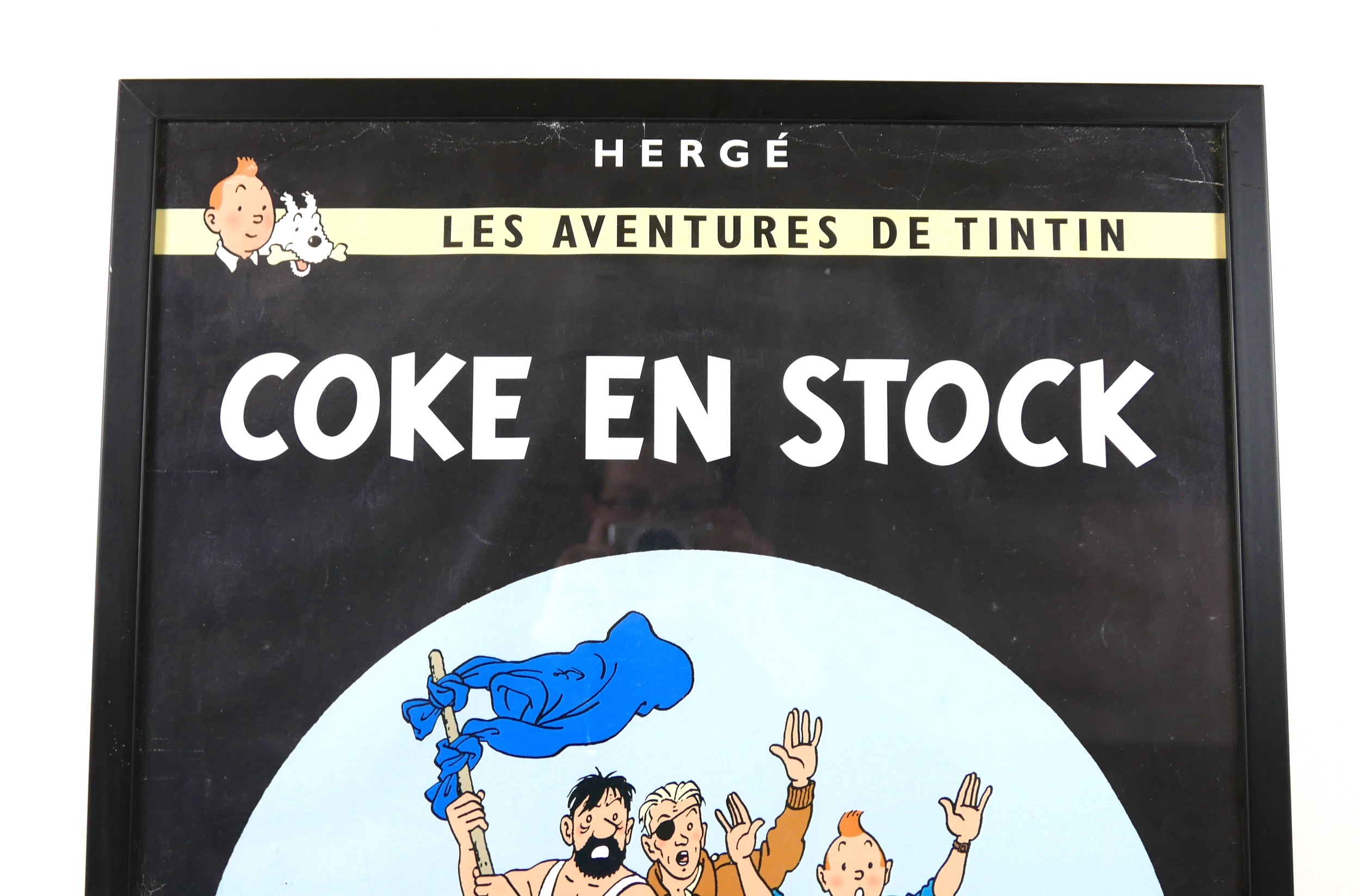 A vintage French poster, Les Aventures de Tintin, Coke en Stock, published by Editions Hazan, Herge-Moulinsart, 69 by 49cm, framed, 73 by 53cm.