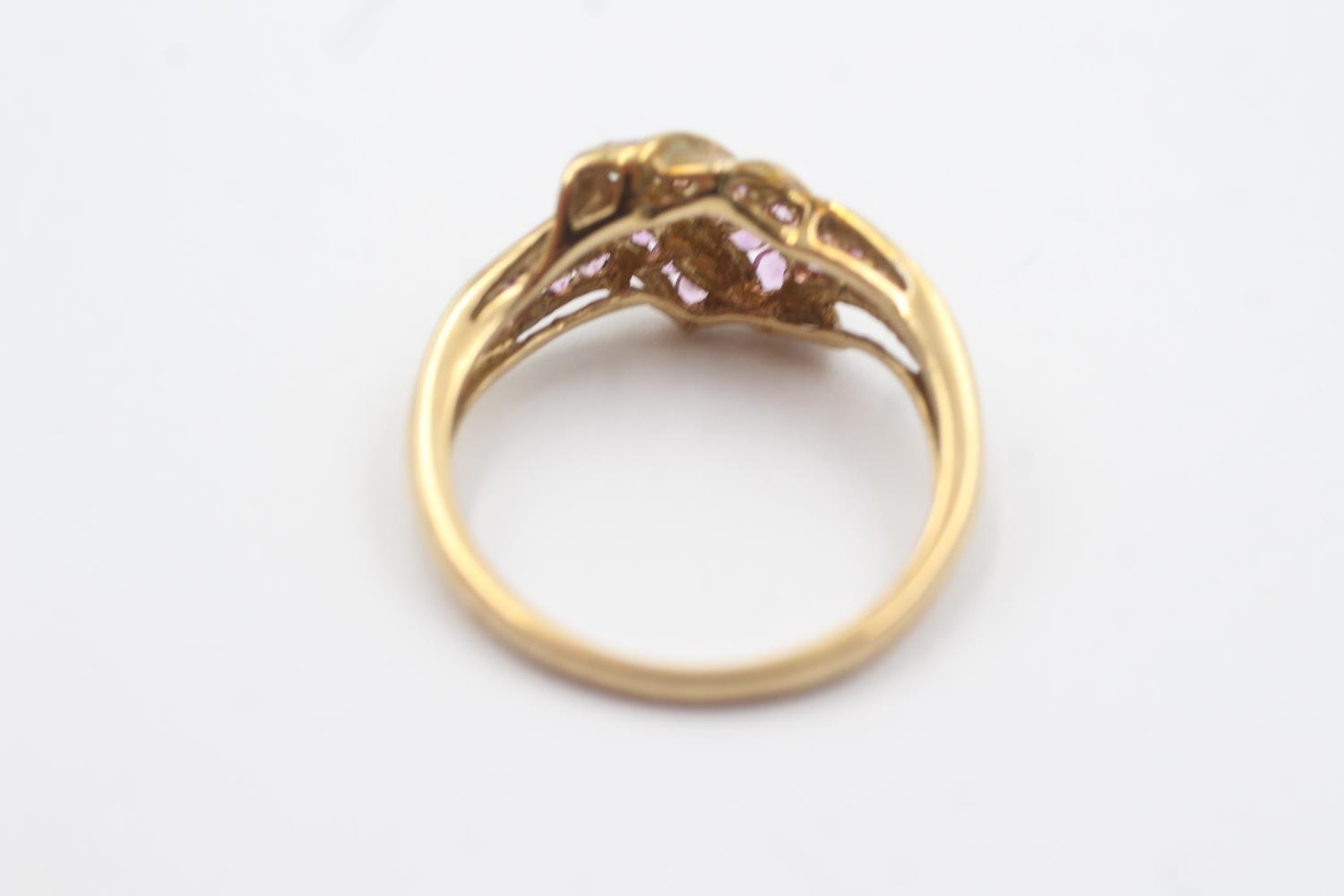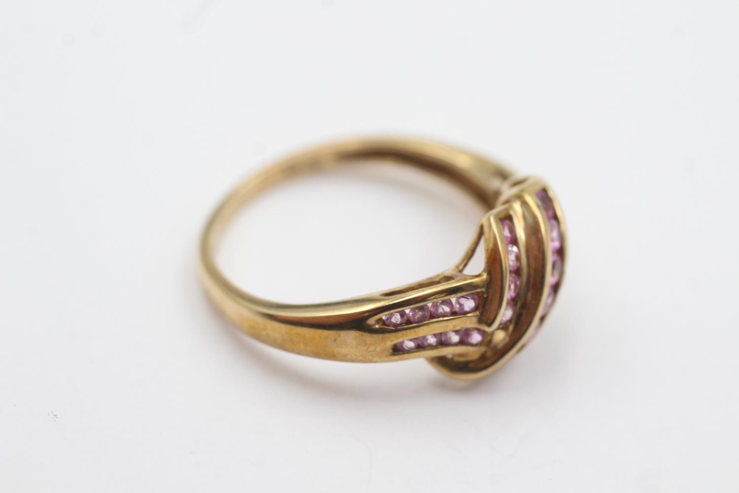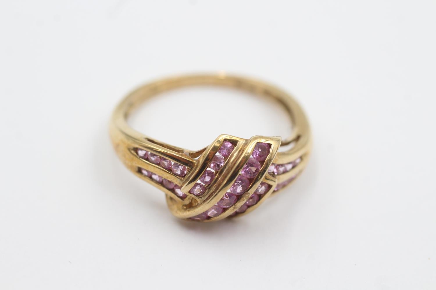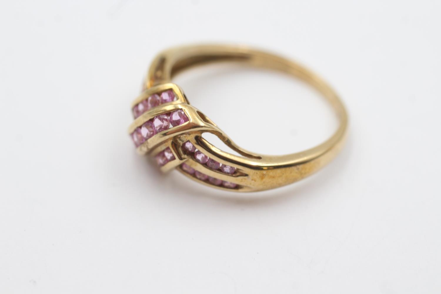 9ct gold pink gemstone channel setting ring (3.2g) Size S