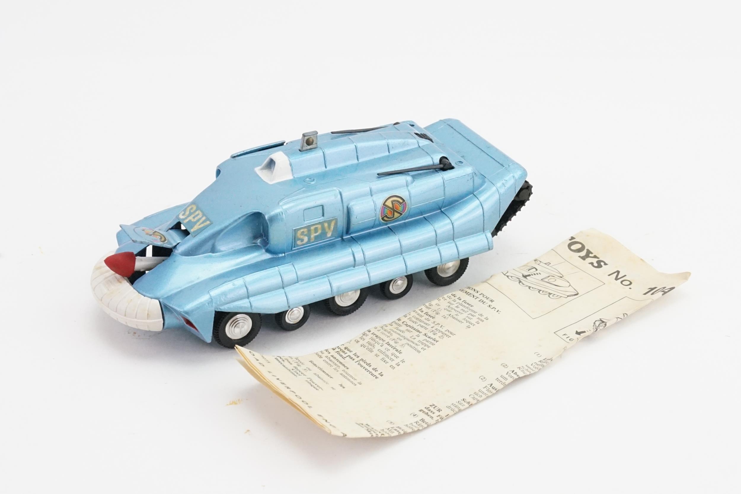 A Dinky No: 104 "Spectrum Pursuit Vehicle" in Blue Complete with the Instructions & Missile but missing the Captain Scarlet Figure & is in Excellent/Near Mint Original Condition.