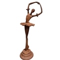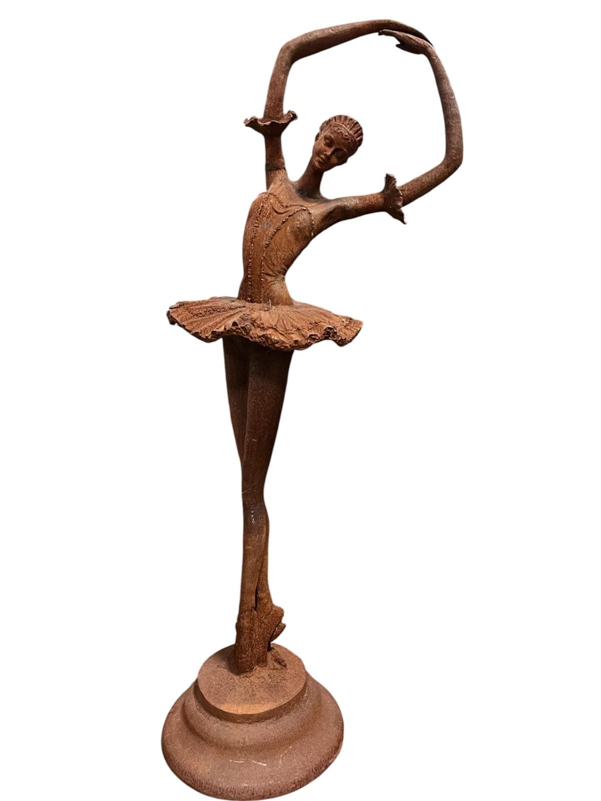 A CAST IRON FIGURE modelled as a ballerina shown standing on a circular stepped platform 114cm (h) x 31cm (d)