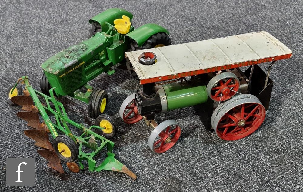 An unboxed live steam Mamod Steam Tractor, with an ERTL John Deere large scale tractor, both S/D. (2)