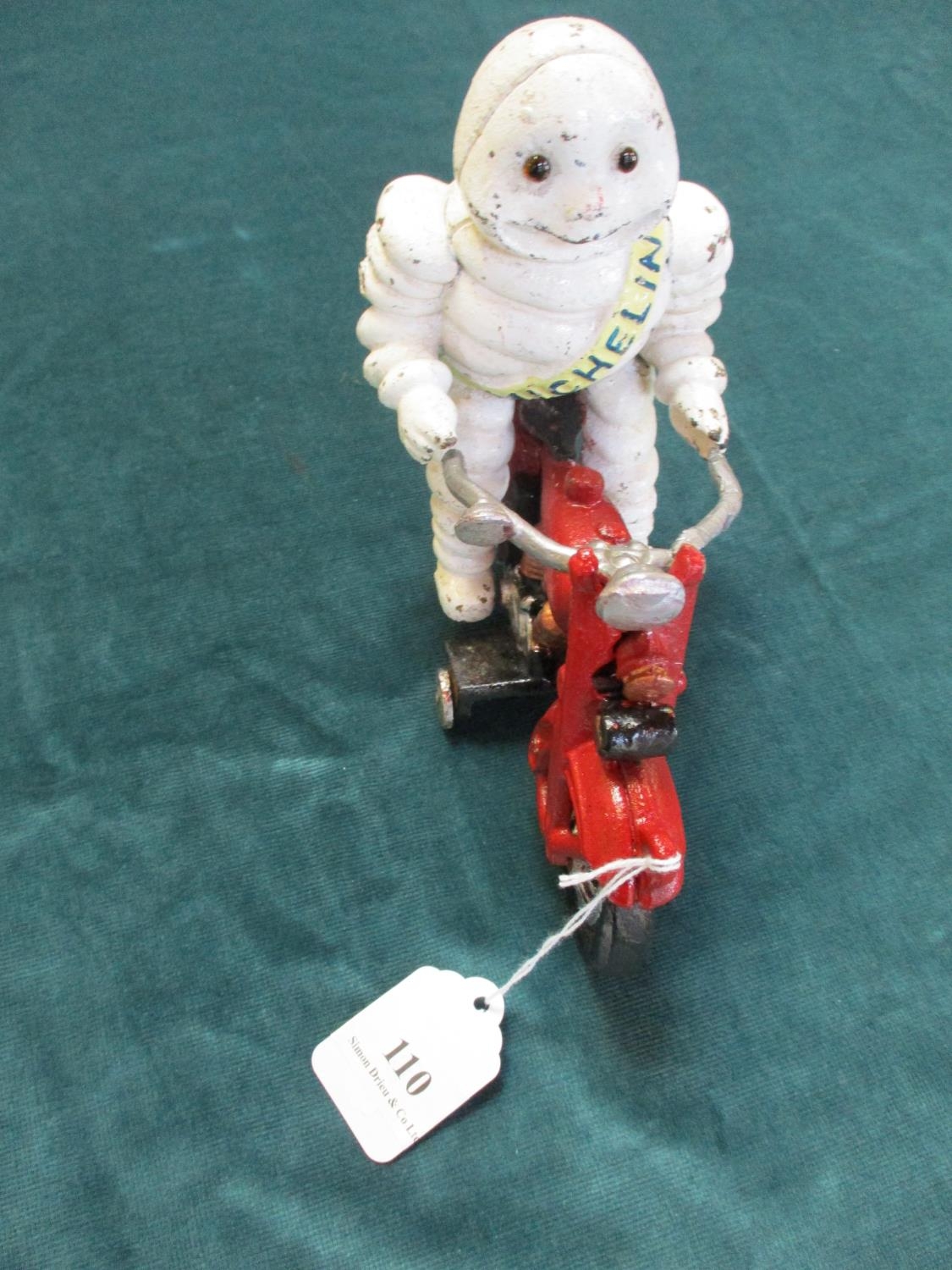 A cast iron Michelin man on motorbike