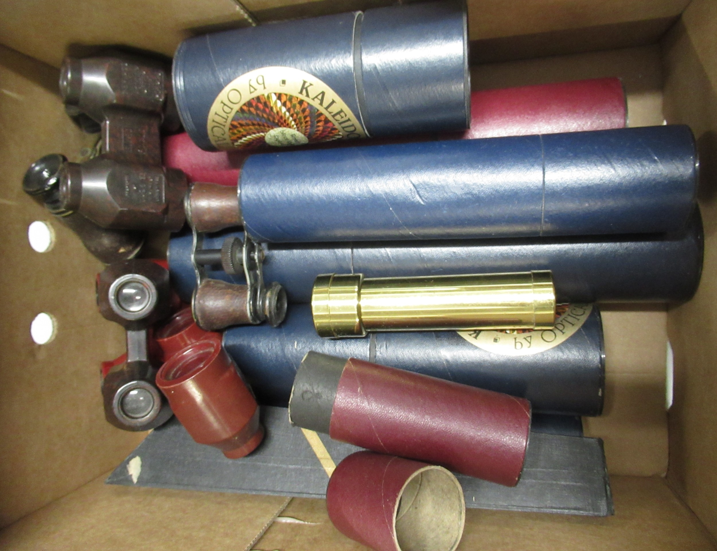 Collection of various opera glasses and kaleidoscopes