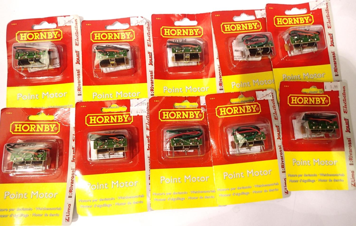 Ten Hornby R8014 point motors, new in packets. P&P Group 1 (£14+VAT for the first lot and £1+VAT for subsequent lots)