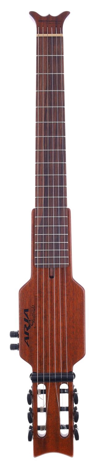 Aria Sinsonido nylon string skeleton electric travel guitar, within original gig bag