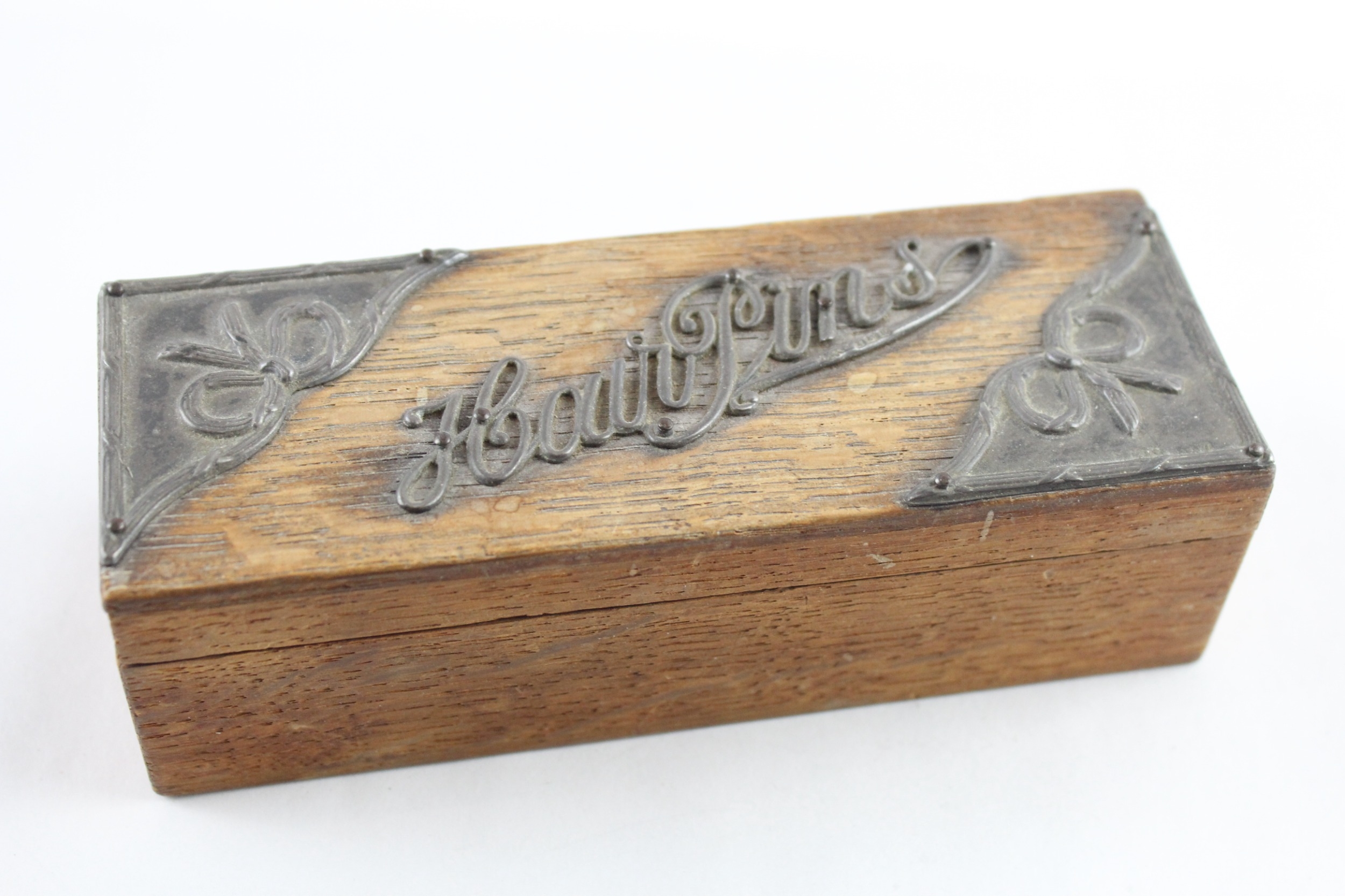 Antique .925 Sterling Silver Spell Out 'Hair Pins' Trinket Box 78g