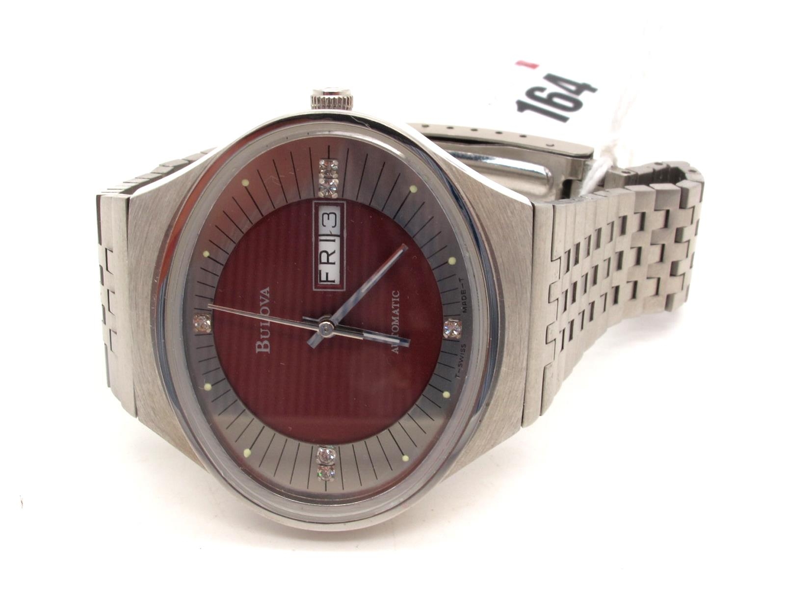 Bulova; A Retro c.1970's Automatic Gent's Wristwatch, the signed elliptical dial with centre seconds and day/date aperture, (movement unseen) the case back numbered "443 01 10" "6-203661", to integral bracelet with foldover clasp.