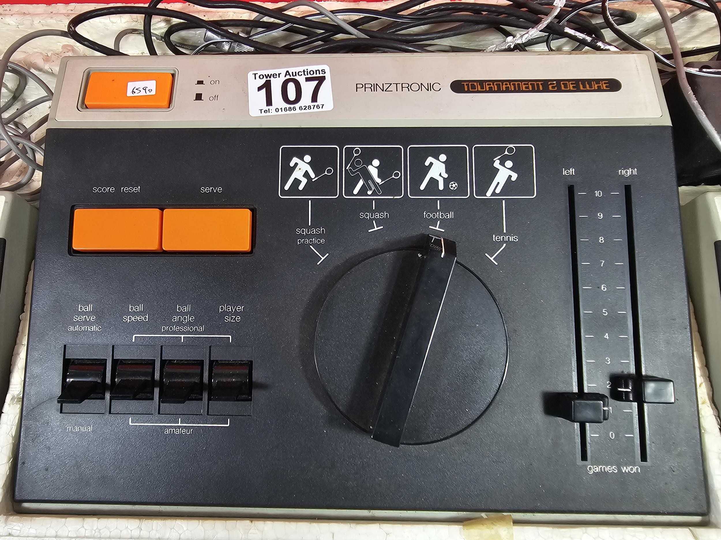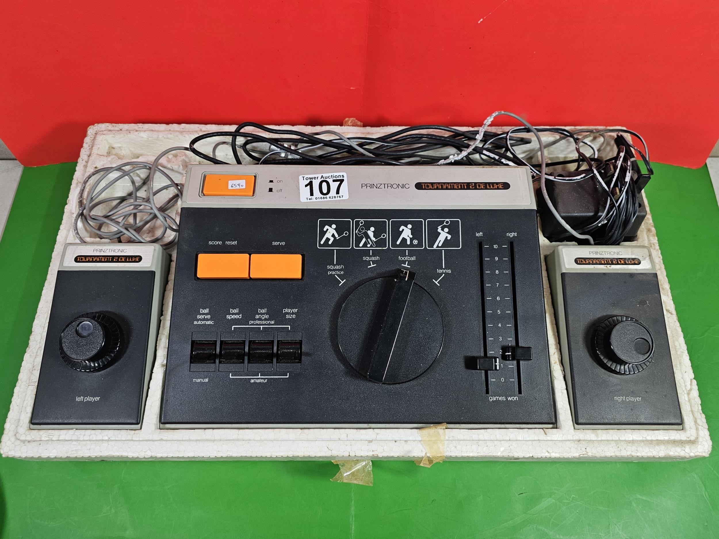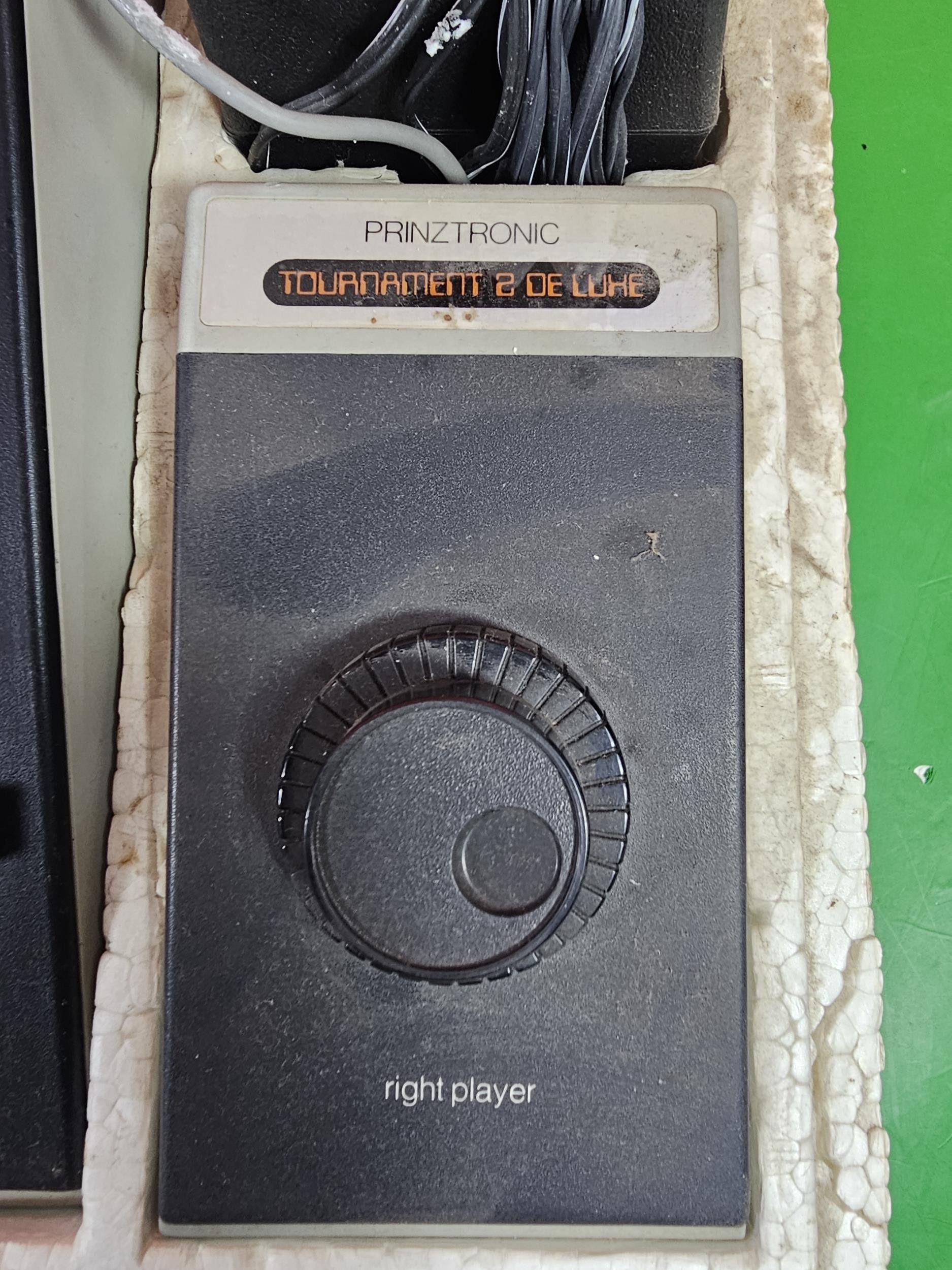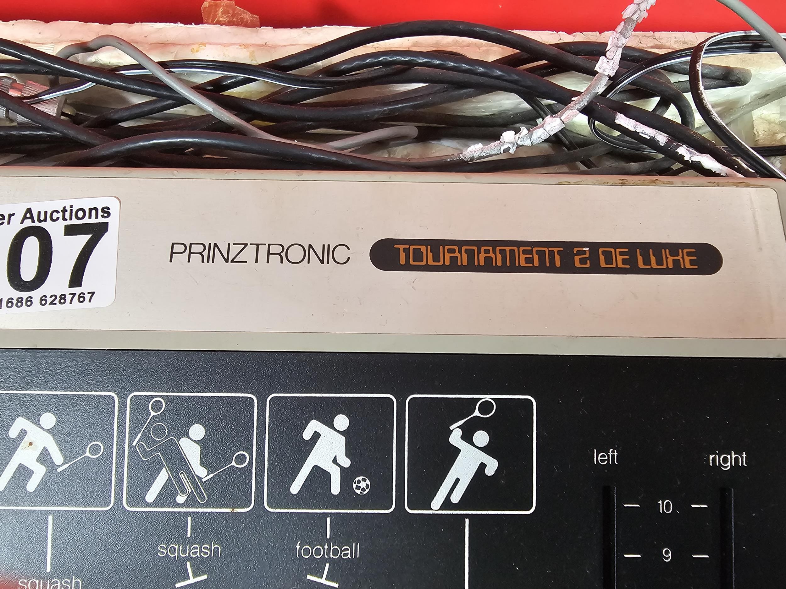 A good quality vintage games machine by Prinztronic Tournament 2 De lux complete with controlling units and power cable, due to the vintage nature of this item we can not guarantee full functionality