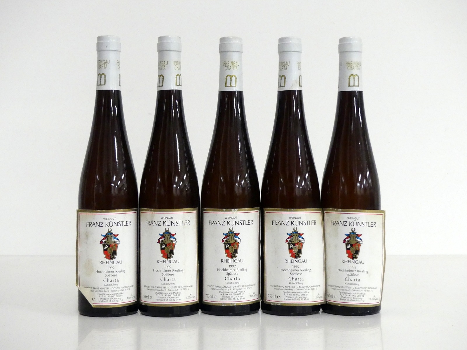 5 bts Franz Künstler Hochheimer Riesling Spätlese Charta 1992 loose labels, sl stl