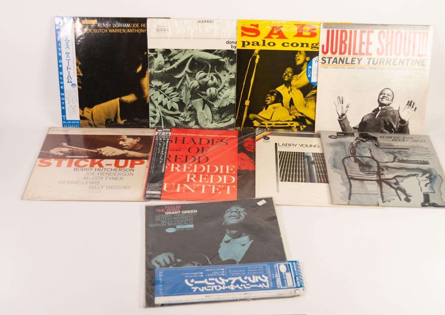 JAZZ VINYL RECORDS, BLUE NOTE. Bobby Hutcherson, Blue Note (BST 84244) ‘Liberty’ label text. Donald Byrd- byrd in flight, Blue Note (BST 84048). Kenny Dorham- Una Mas, Blue Note (BST 84127). Together with a quality selection of other BLUE NOTE releases, various artists and pressings artists to include DONALD BYRD, TURRENTINE, HORACE SILVER, THE THREE SOUNDS, LEE MORGAN, ART BLAKEY, JACKIE MCLEAN, BLUE MITCHELL, DIZZY REECE, AHMAD JAMAL, GRANT GREEN, FREDDIE REDD QUINTETT, SABU etc. Condition-Various. (20)