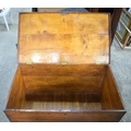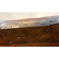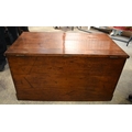 A VERY LARGE 19TH CENTURY OAK BOUND BRASS HANDLED COFFER of huge proportions. 106 cm x 59 cm.