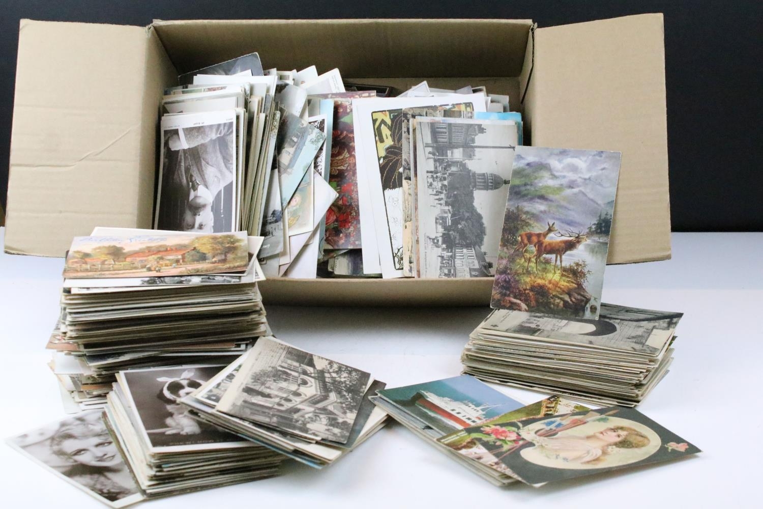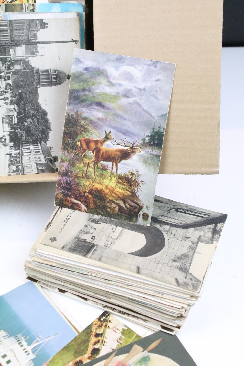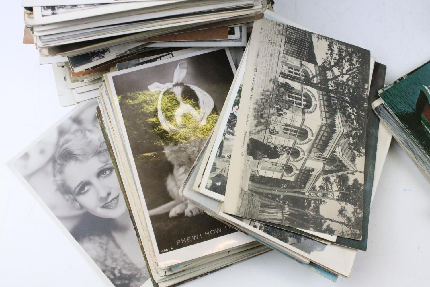 Large collection of pre-WW2 postcards to include British and international examples, the subjects featuring coastal scenes, photographic, maritime, animals, etc. (2 boxes)
