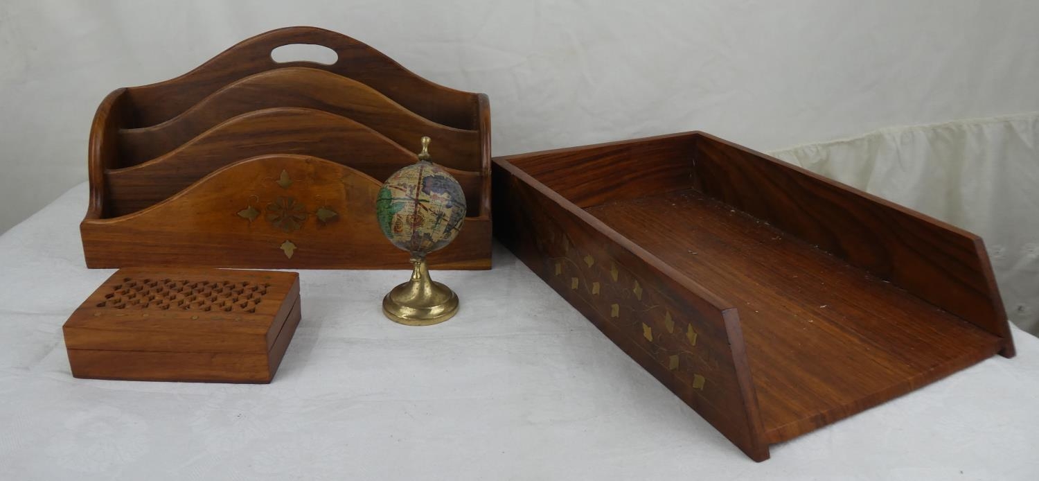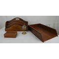 An assortment of decorative office desk pieces, to include paper tray, letter rack & more.