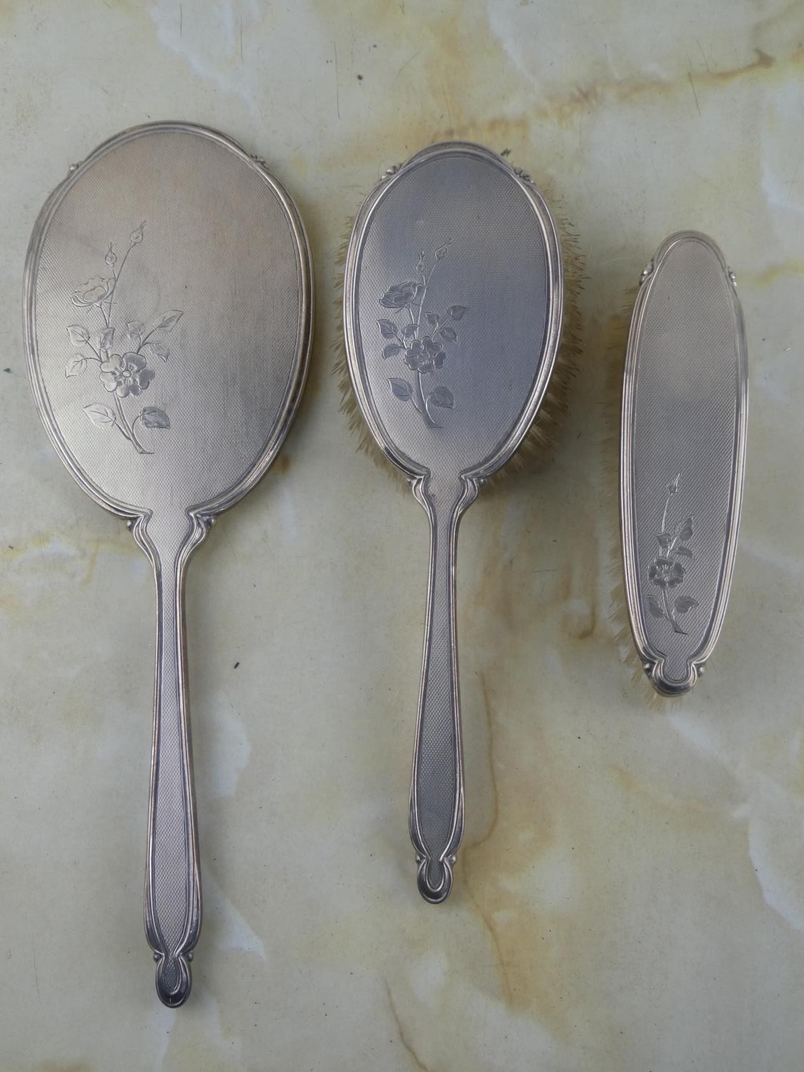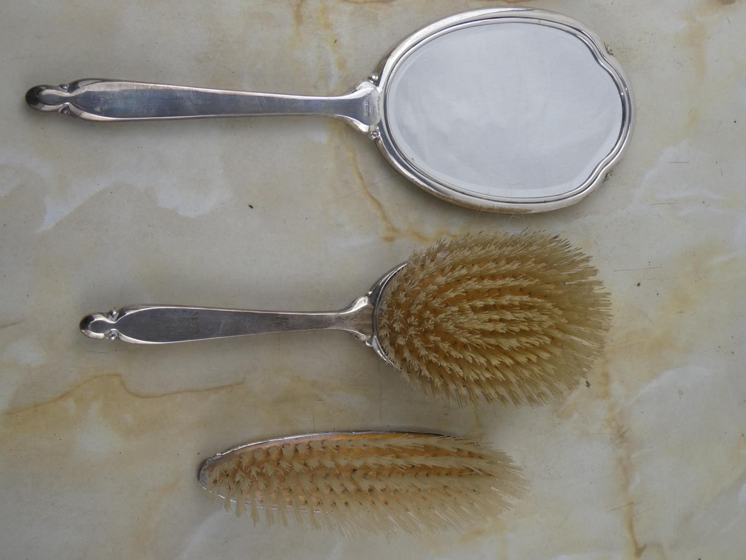 A stunning three piece Sterling Silver dressing table set.