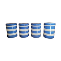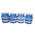 Having cobalt blue and white banded design, each features distinct black typography for Rice, Castor Sugar, Dried Fruit, and Raisins, black shield mark to bas.