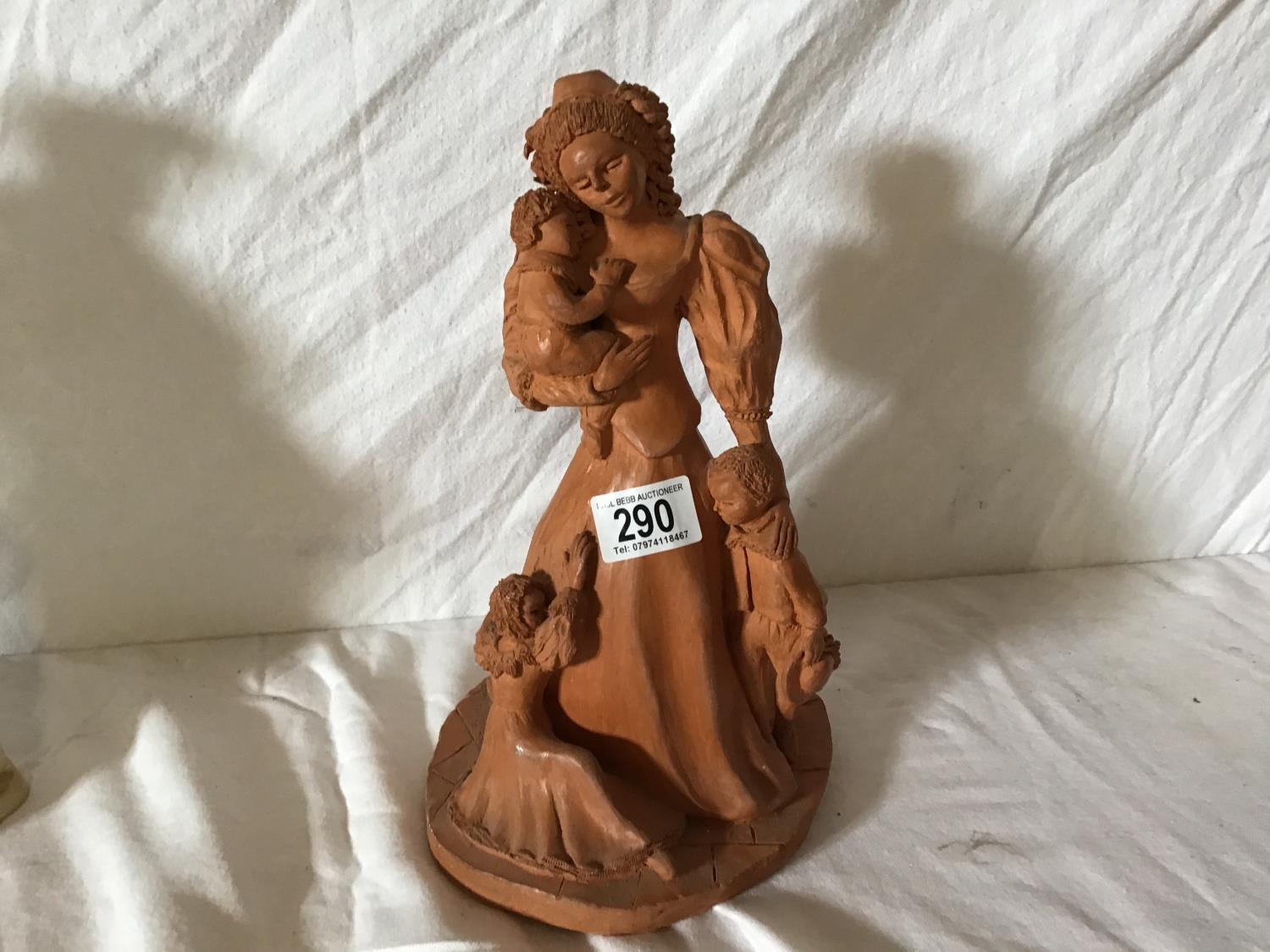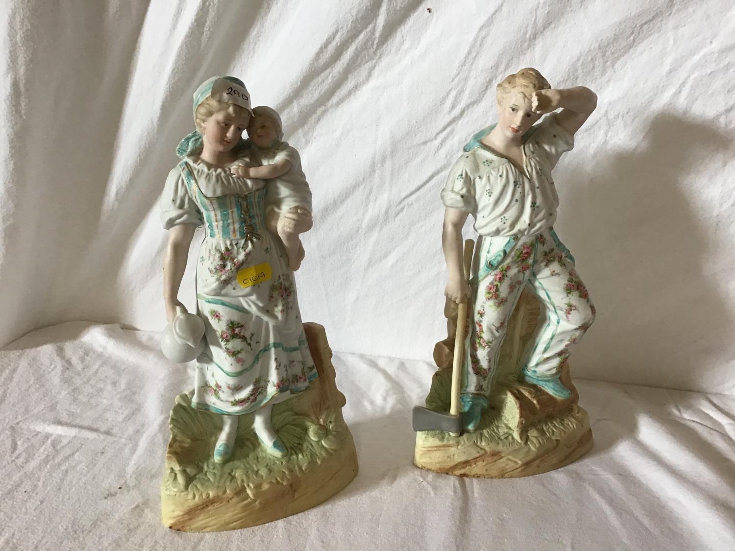 PAIR OF VICT FIGURES OF A MAN AND A WOMAN, TERECOTTA FIGURE OF A LADY WITH CHILDREN AND 2 ORNEMENTAL BOWLS