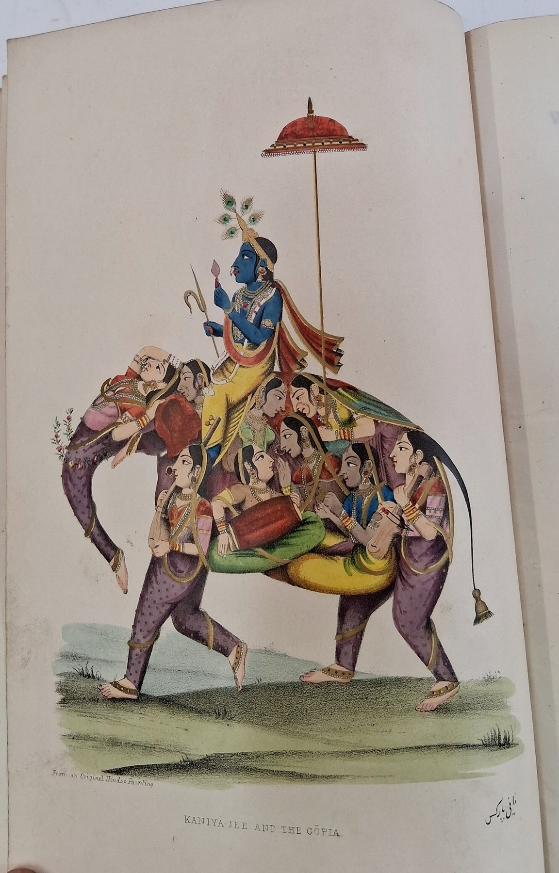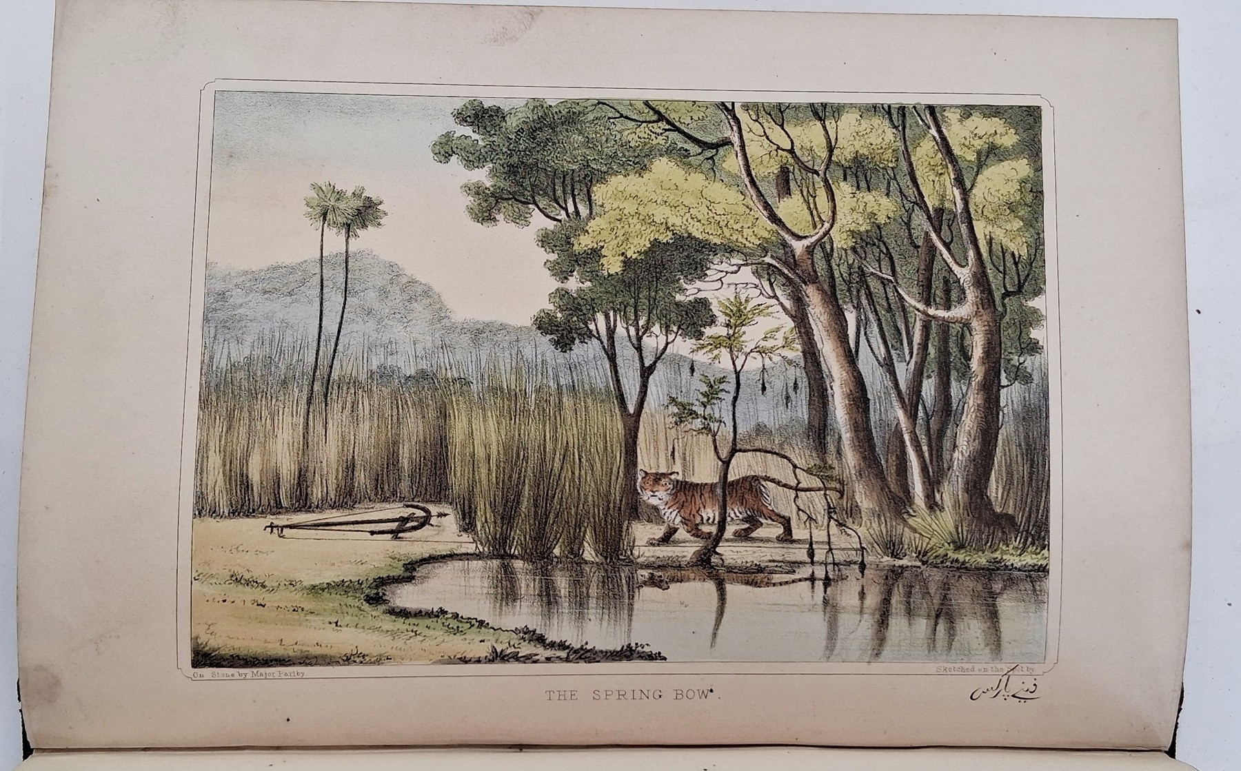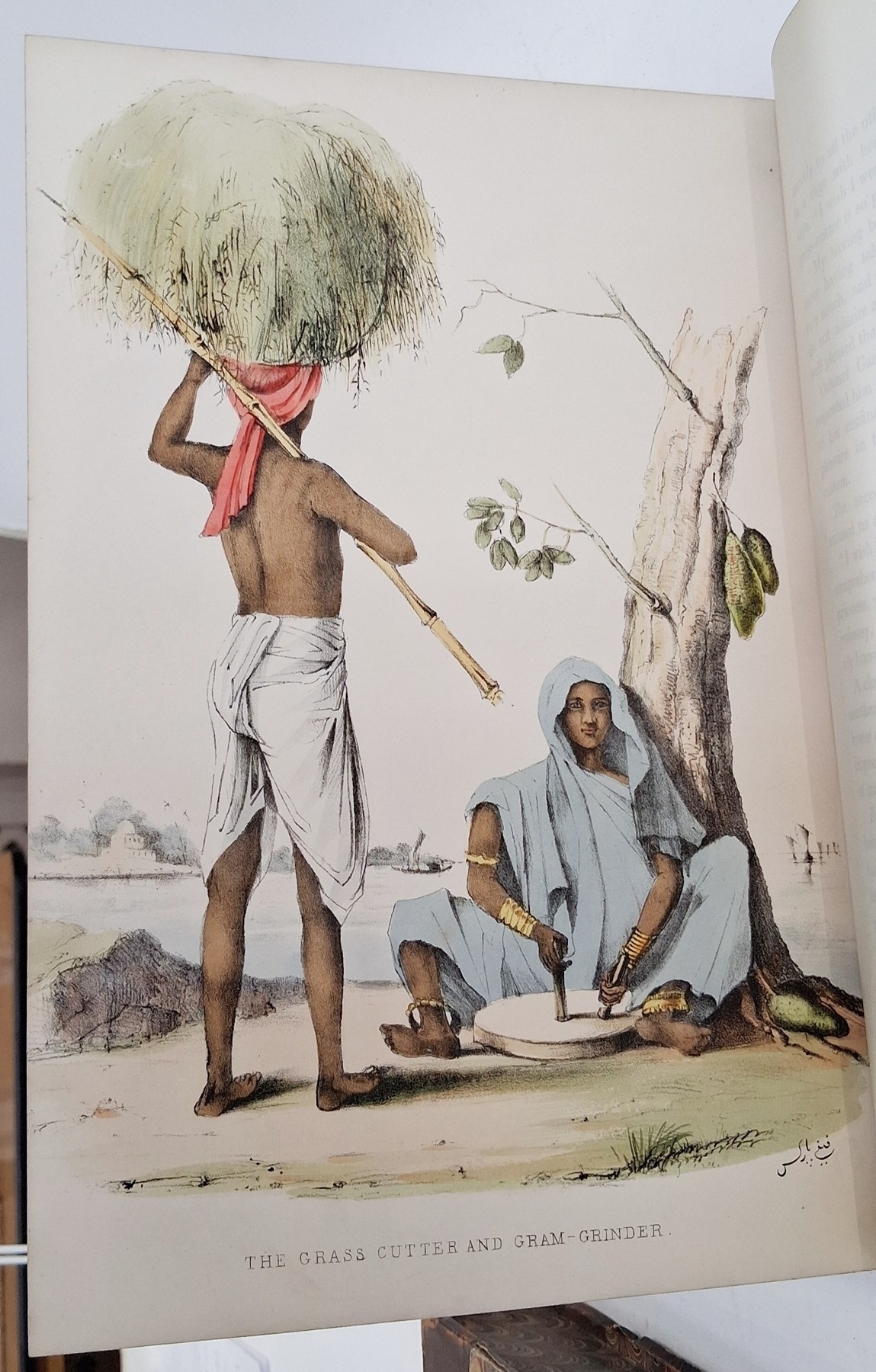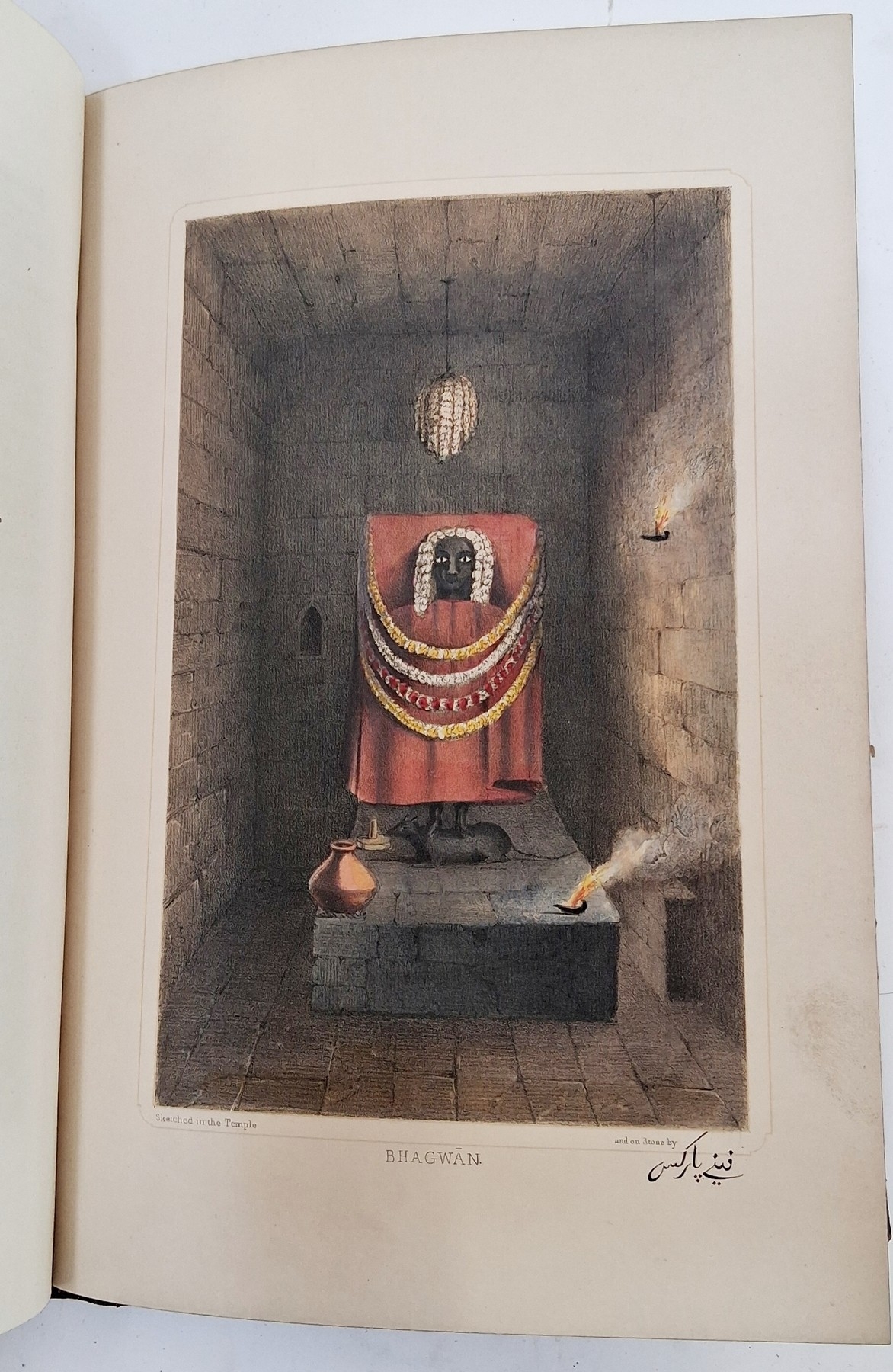 Parks, Fanny (Frances Susanna Archer 1794-1875) 'Wanderings of a Pilgrim in Search of the Picturesque during four and twenty years in the East; with revelations of life in the Zenana', two volumes, Pelham Richardson 1850, colour frontis to both volumes with tissue guard, colour plates and plates with tissue guards, half leather over marbled boards, gilt decorations and raised bands to back strips, paste down titles in green and red leather, marbled edges, marbled end papers, book plates inside front boards, the boards and corners rubbed, the text and plates are clean (2). Now collated - 'The Elevation of the Himalaya' is not present in vol II, all other plates are present as listed in both volumes
