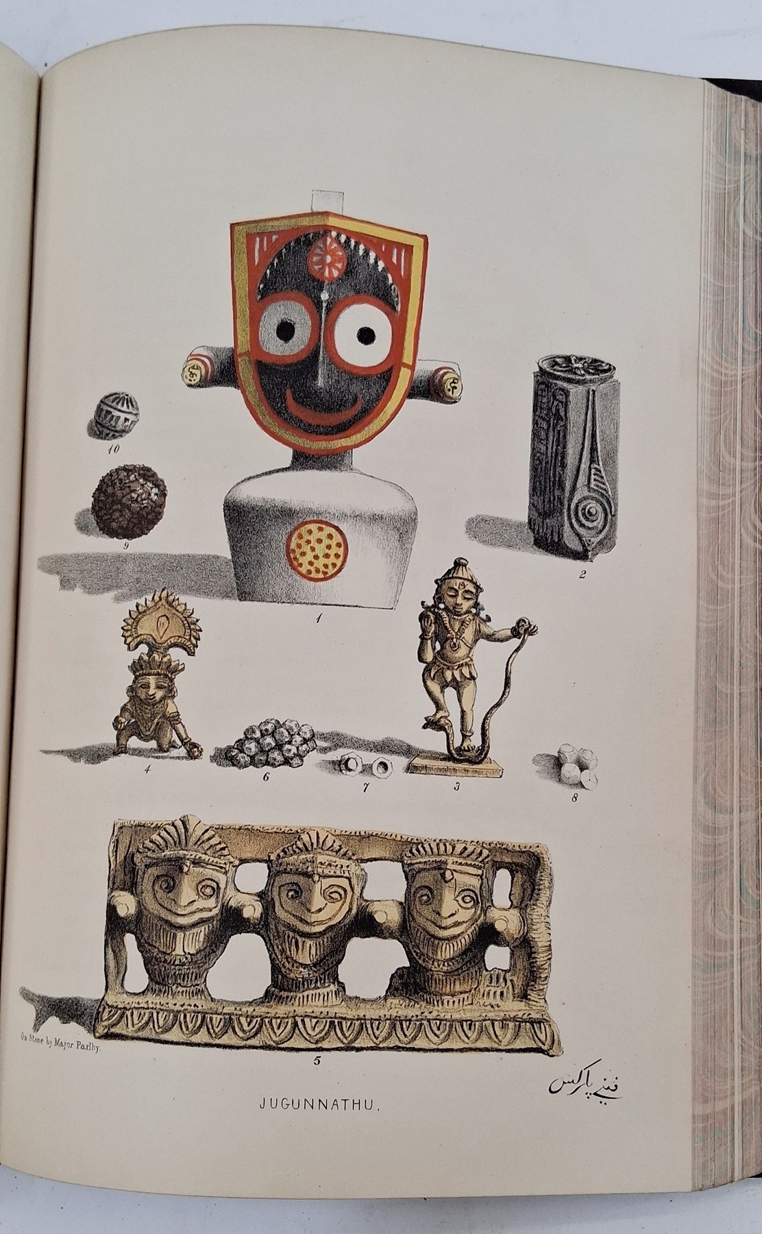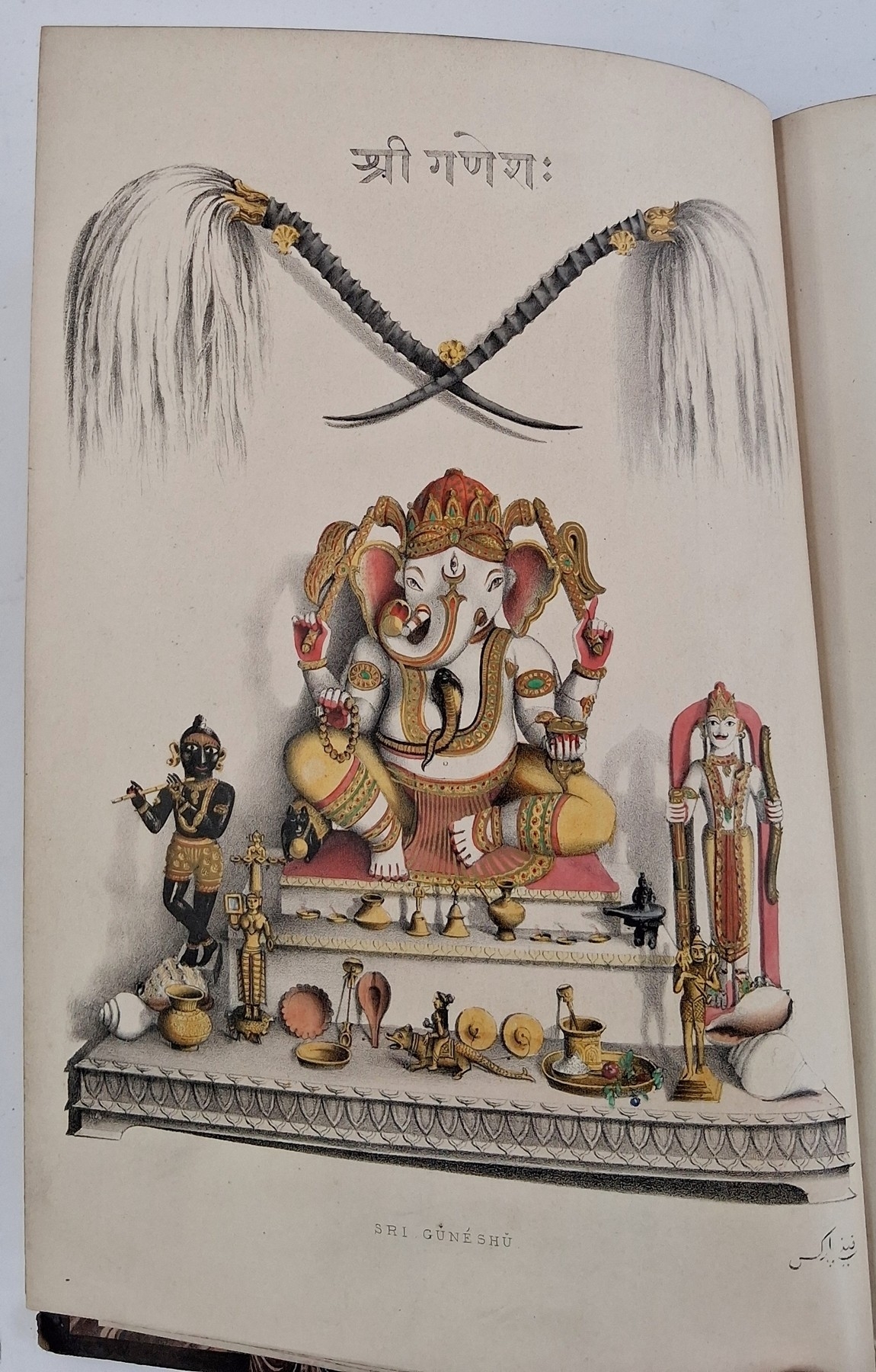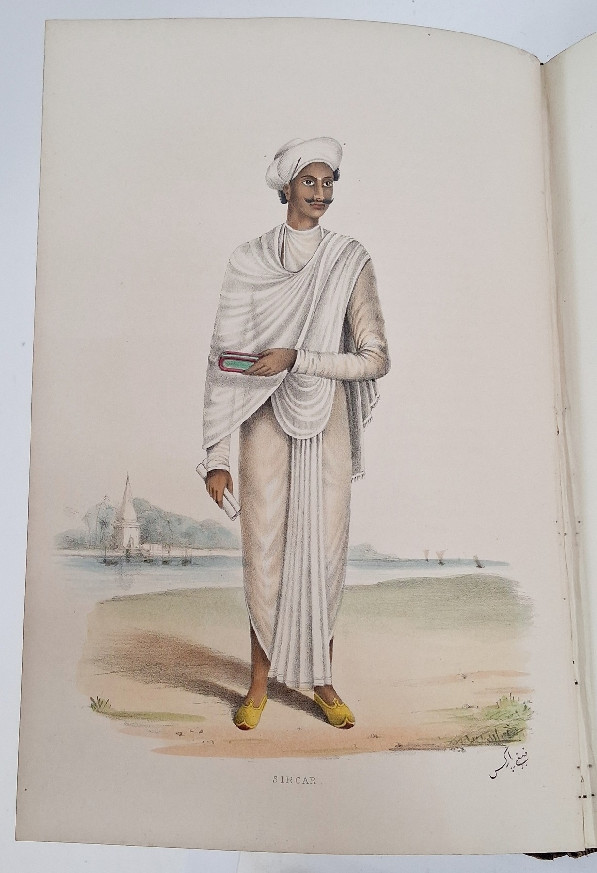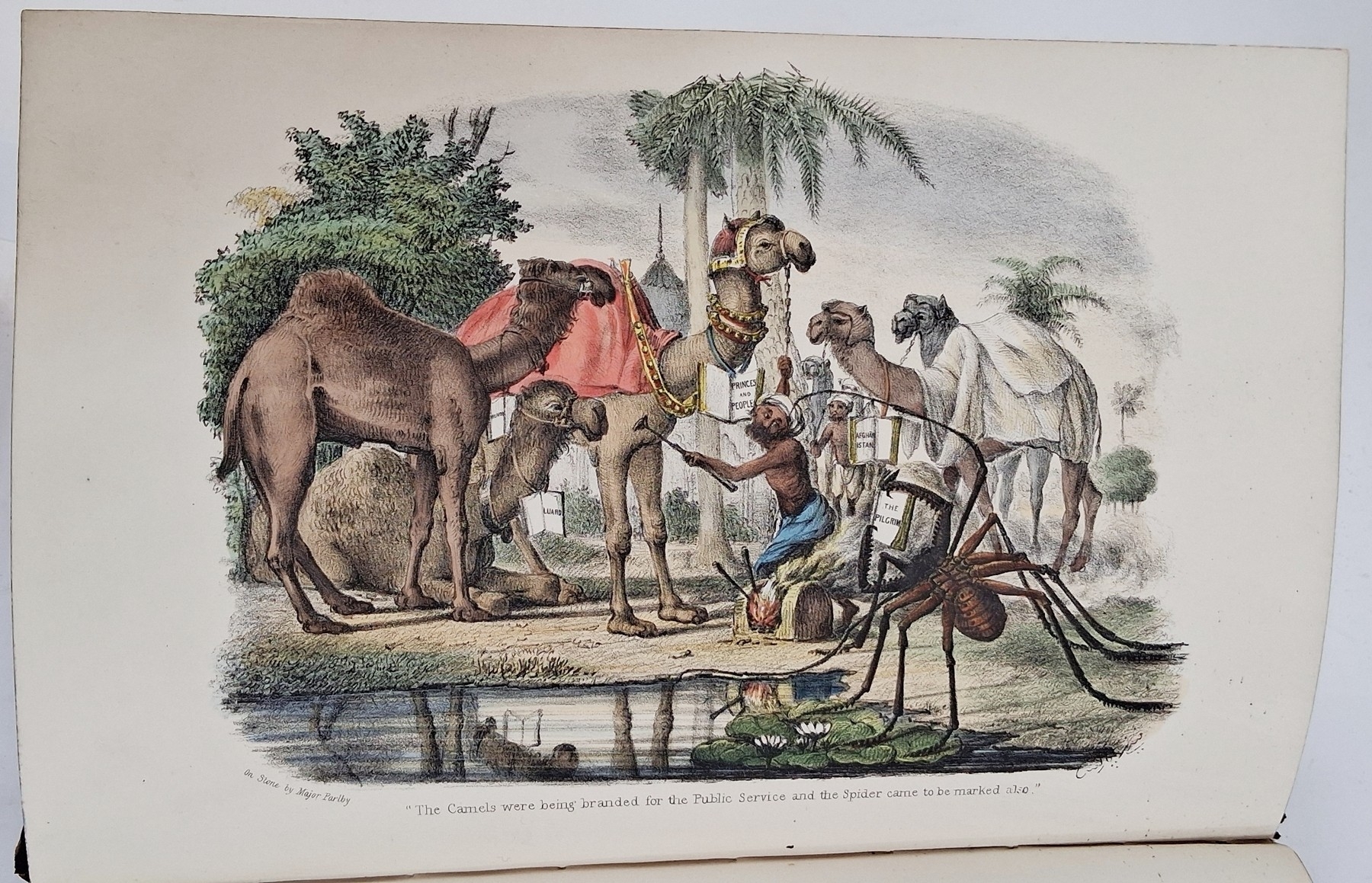 Parks, Fanny (Frances Susanna Archer 1794-1875) 'Wanderings of a Pilgrim in Search of the Picturesque during four and twenty years in the East; with revelations of life in the Zenana', two volumes, Pelham Richardson 1850, colour frontis to both volumes with tissue guard, colour plates and plates with tissue guards, half leather over marbled boards, gilt decorations and raised bands to back strips, paste down titles in green and red leather, marbled edges, marbled end papers, book plates inside front boards, the boards and corners rubbed, the text and plates are clean (2). Now collated - 'The Elevation of the Himalaya' is not present in vol II, all other plates are present as listed in both volumes