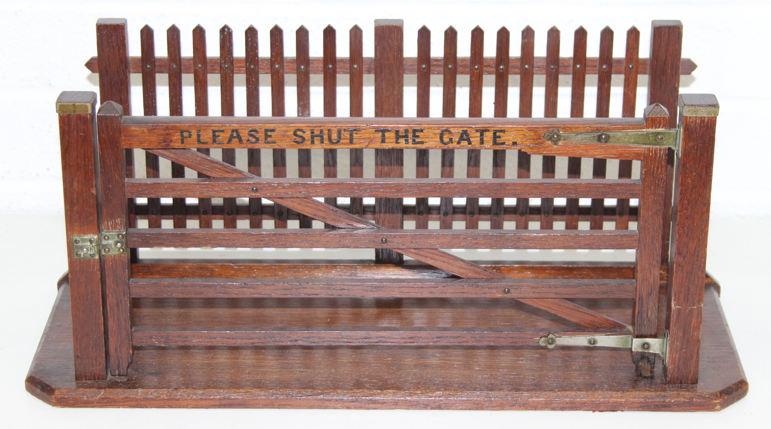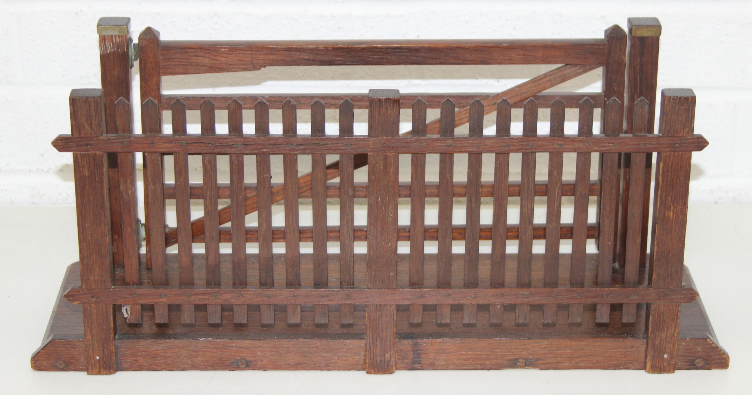 Vintage wooden novelty magazine/paper rack formed as a farmgate with picket fence, 49cm x 18cm x 21cm