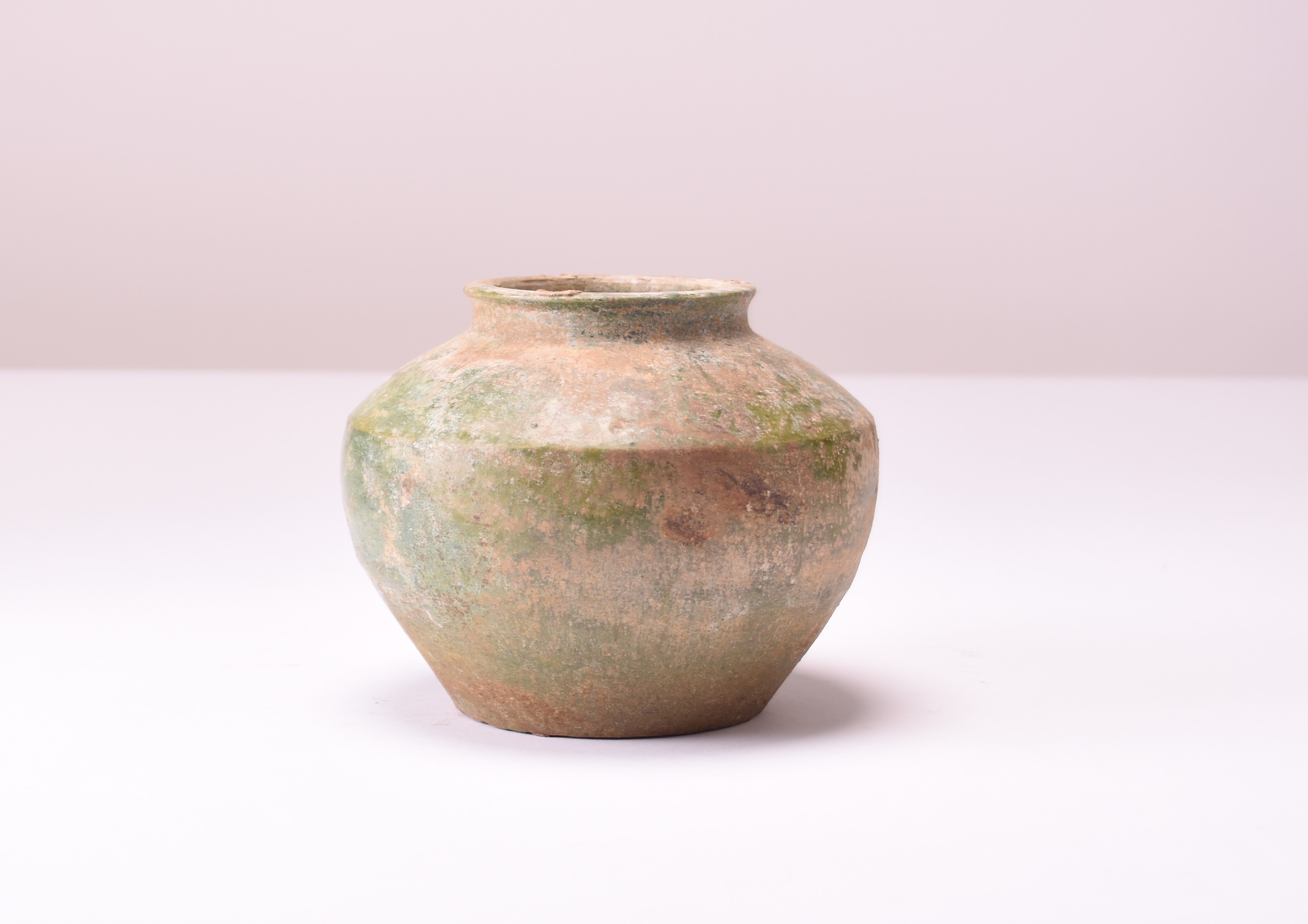 A green glazed terracotta jar, Han Dynasty Of ovoid form with everted rim, decorated with an all-over apple-green glaze. 12.5cm high English private collection, the property of a gentleman.