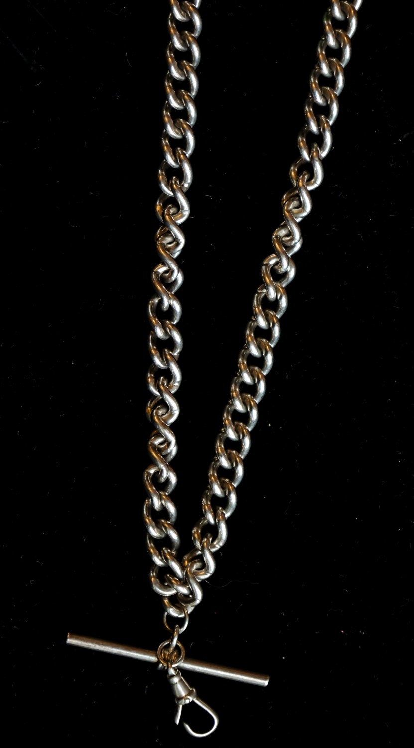 Ladies Silver T-Bar Clasp Curb Link Necklace Full Length