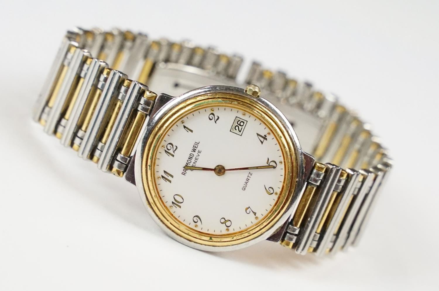 Raymond Weil Geneve Quartz men's wristwatch, with bi-metal bracelet, marked 'water resistant'