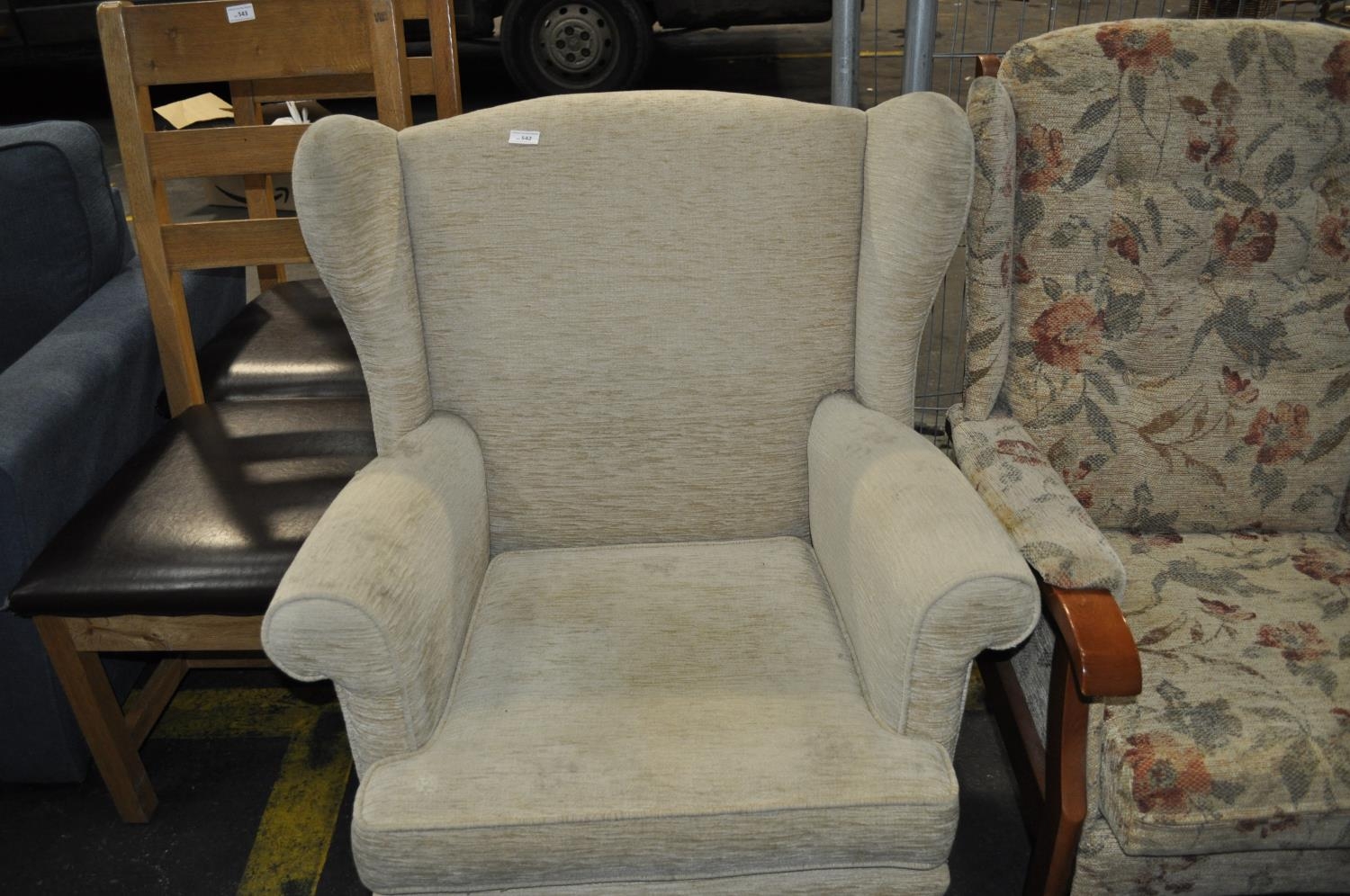 CREAM UPHOLSTERED WINGBACK CHAIR