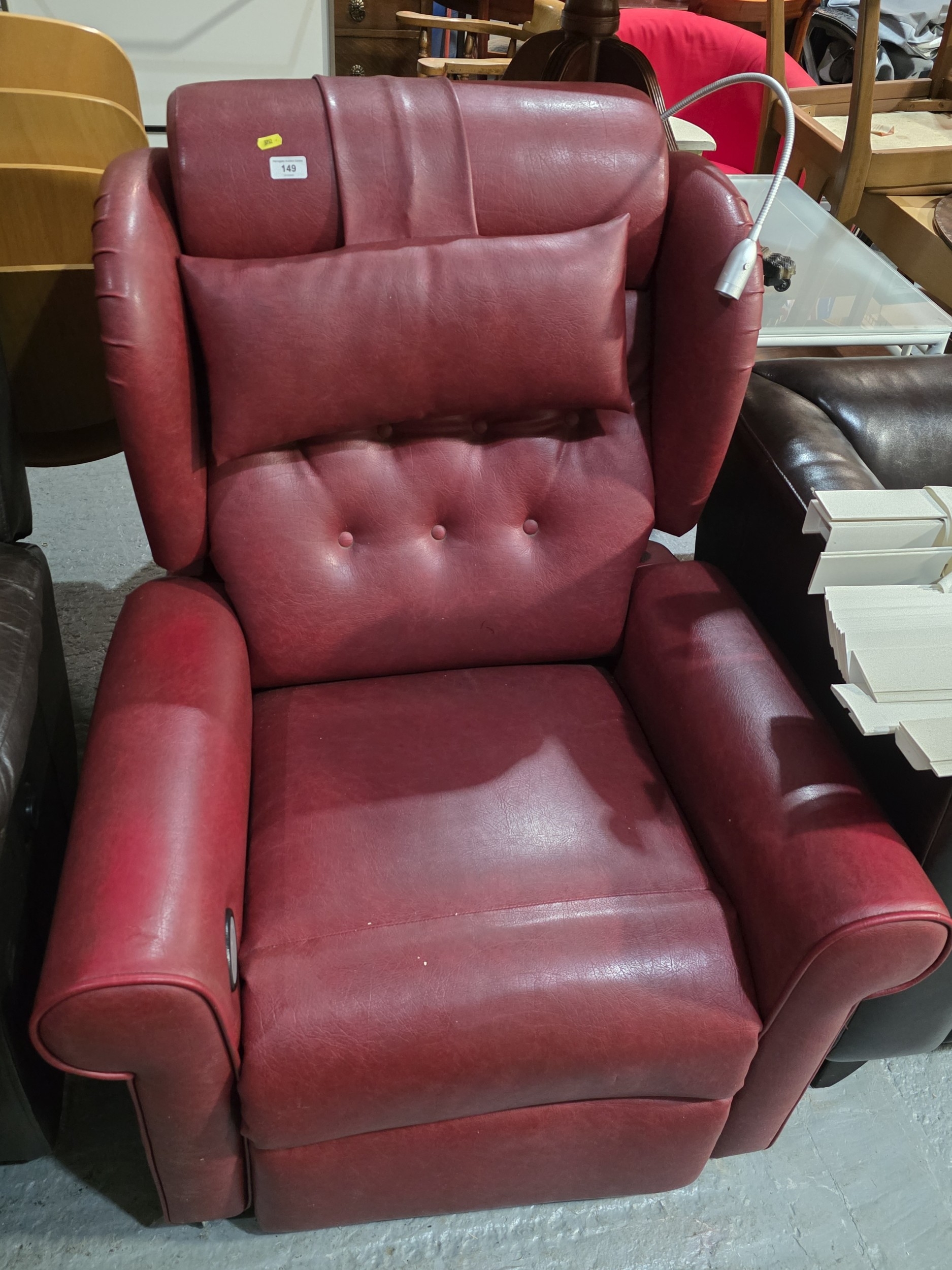 RED LEATHER ELECTRIC RECLINER ARMCHAIR WITH INTEGRATED READING LIGHT