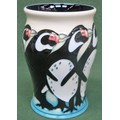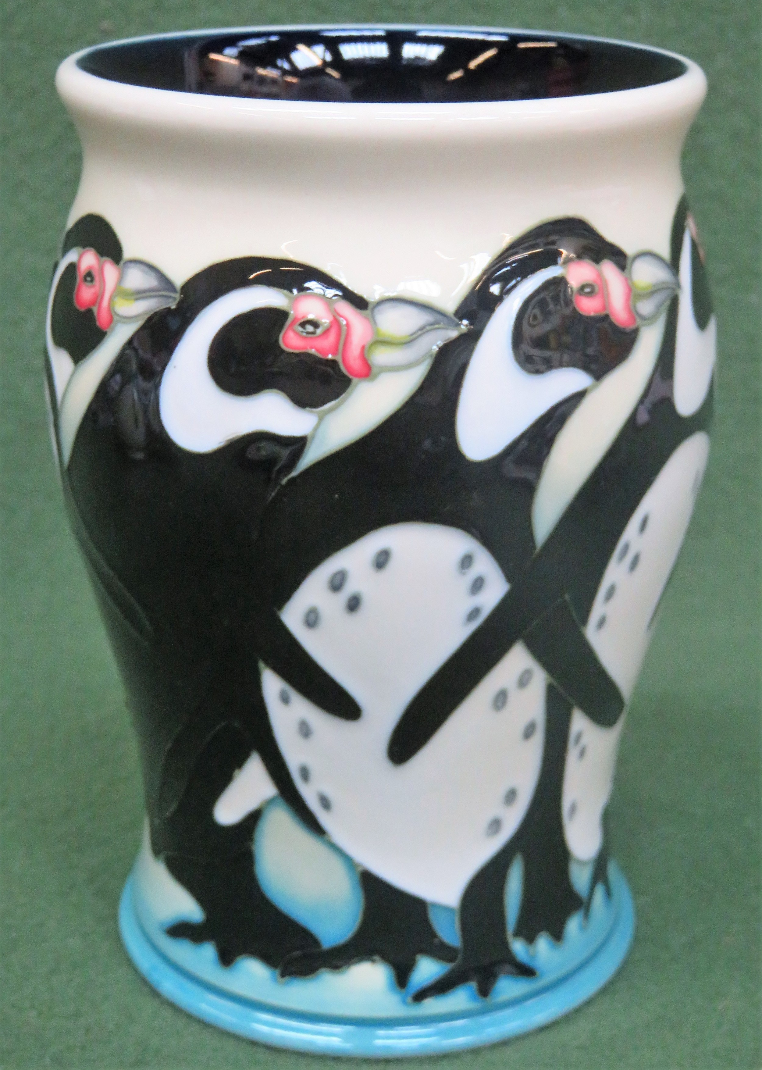 Moorcroft tube lined and glazed ceramic vase, decorated with King Penguins, designed by Kerry Goodwin and dated 2009. Approx. 14cms H