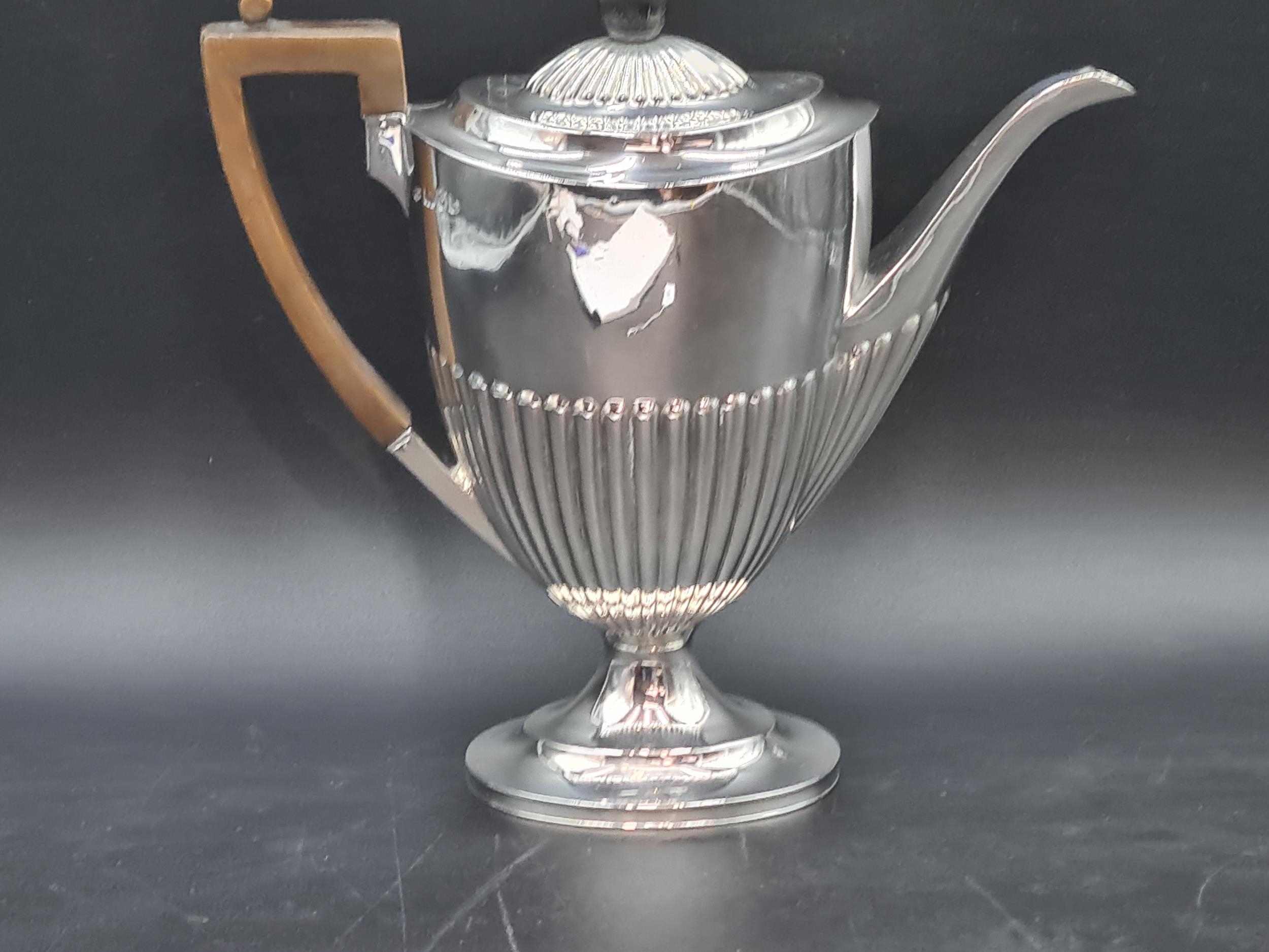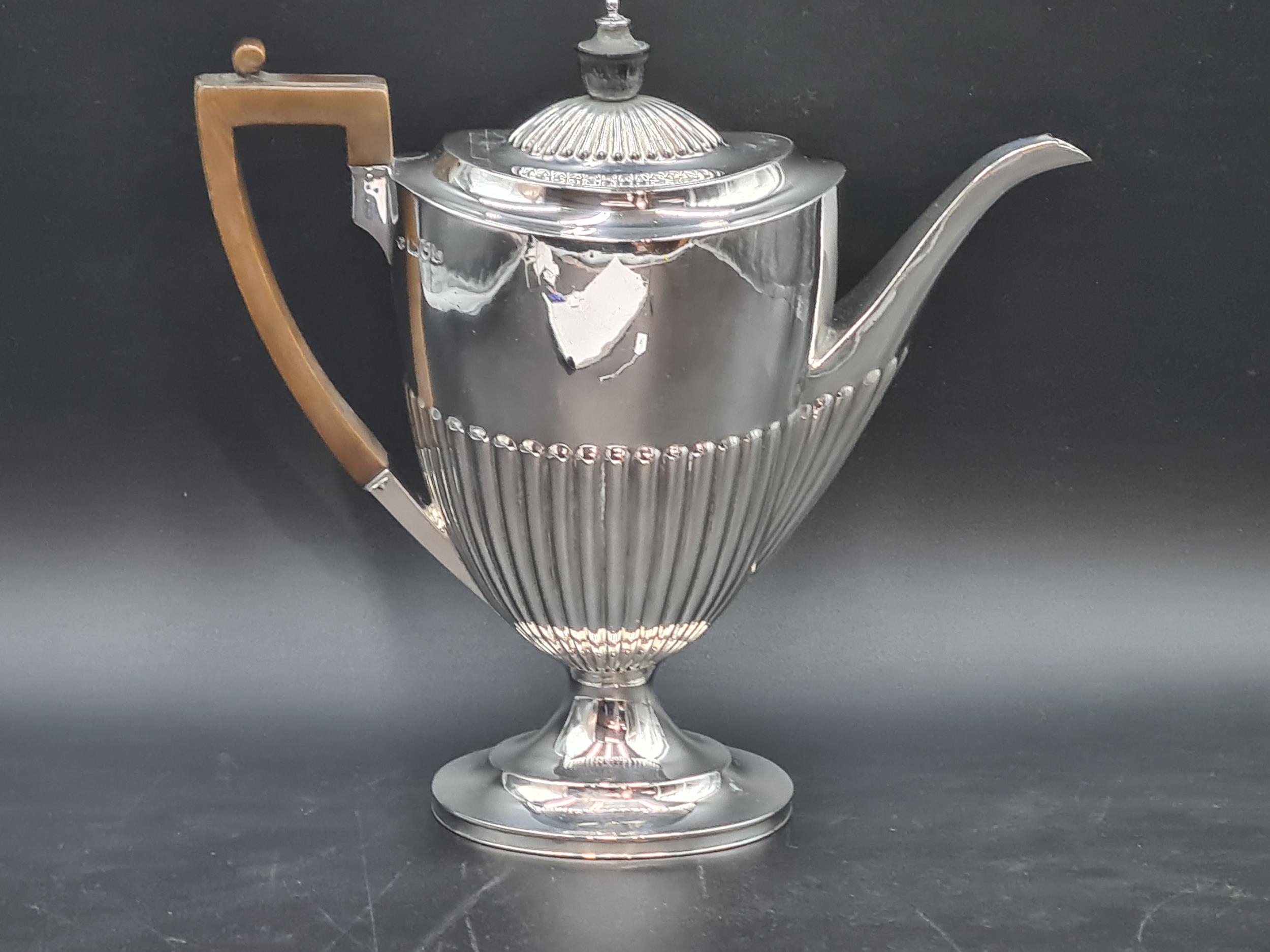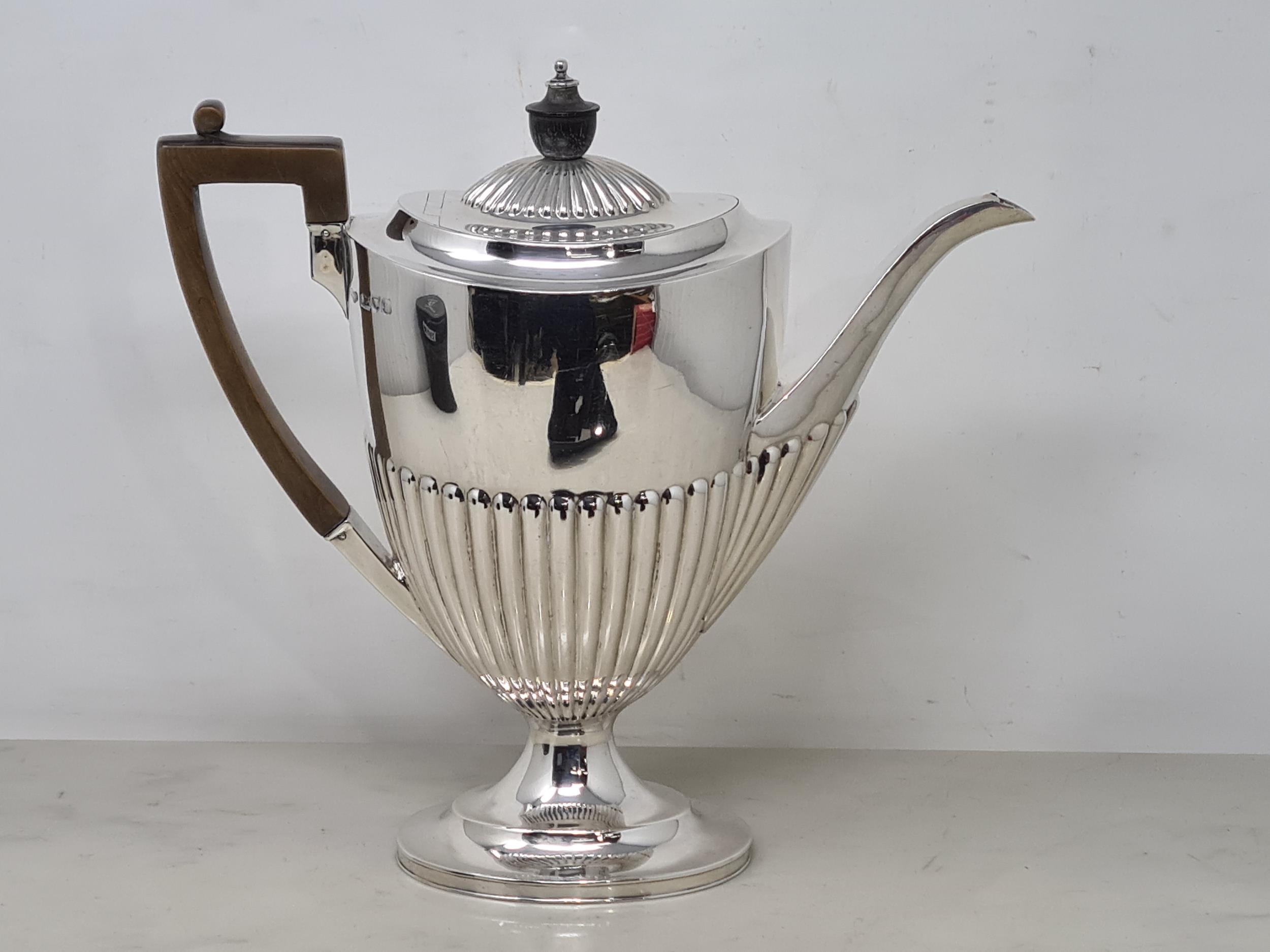 An Edward VII silver Coffee Pot of oval semi-fluted form, London 1901, maker: Goldsmiths & Silversmiths Co Ltd, 580gms