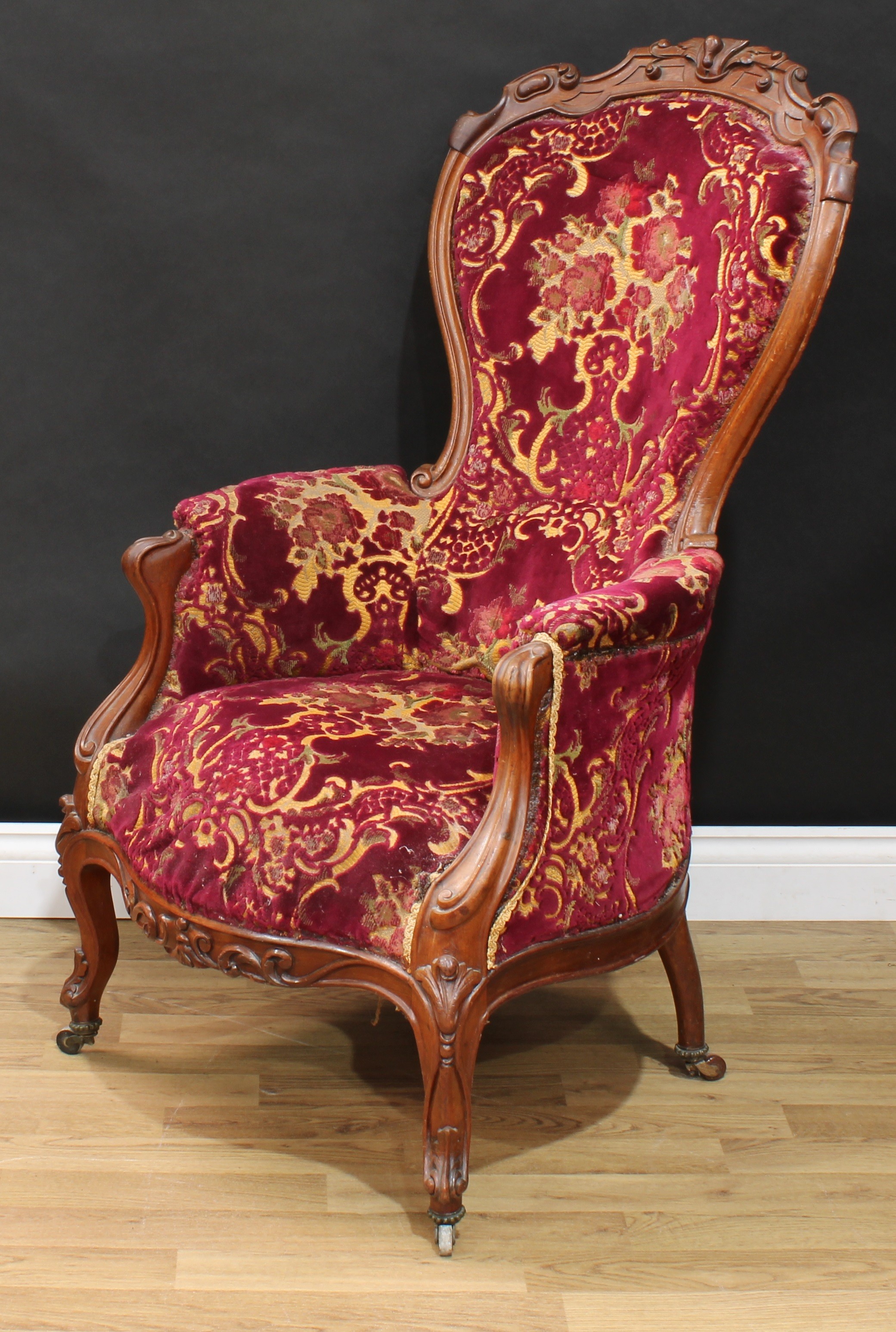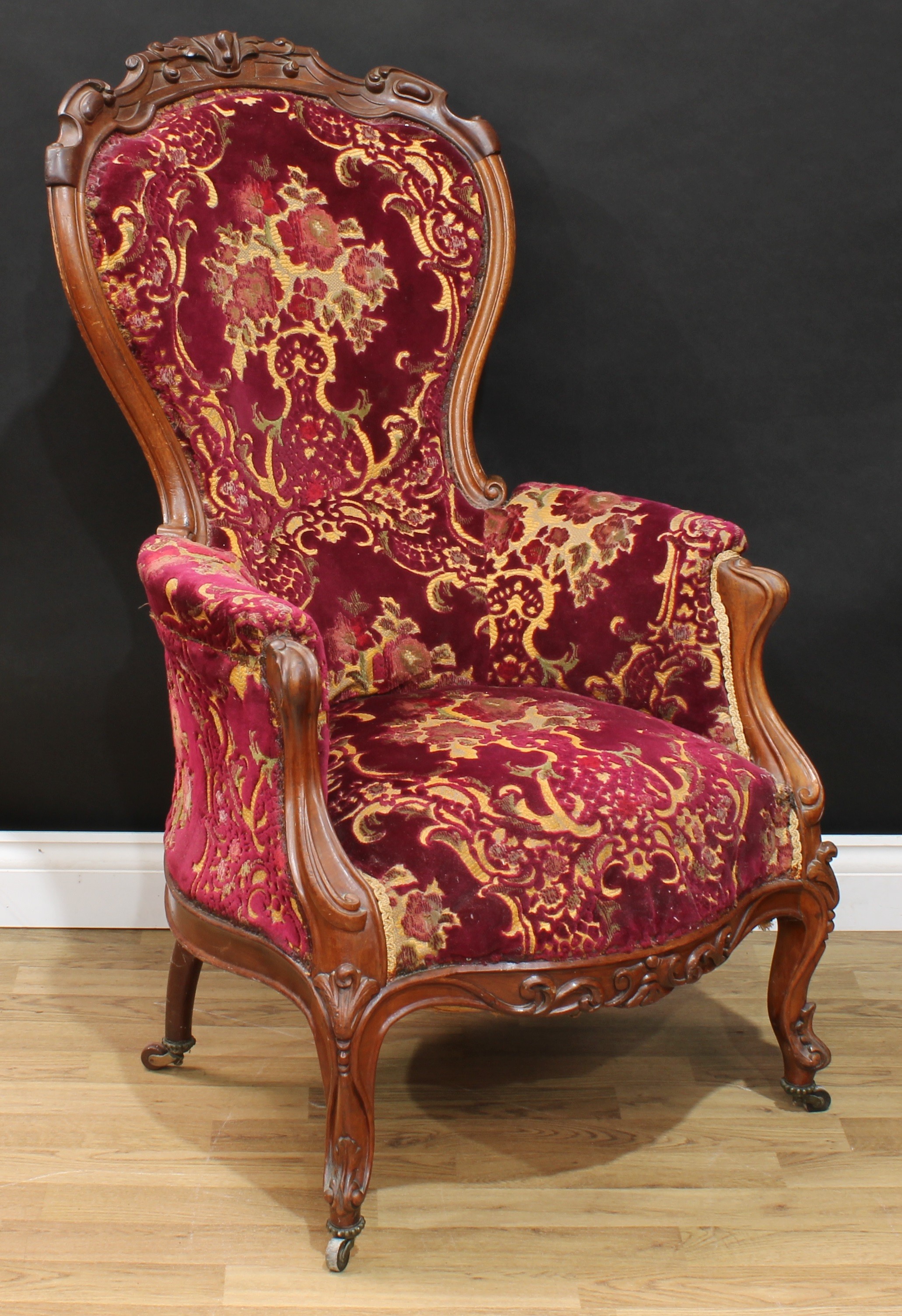 A Victorian spoon back drawing room chair, 111cm high, 65cm wide, the seat 42cm wide and 38cm deep