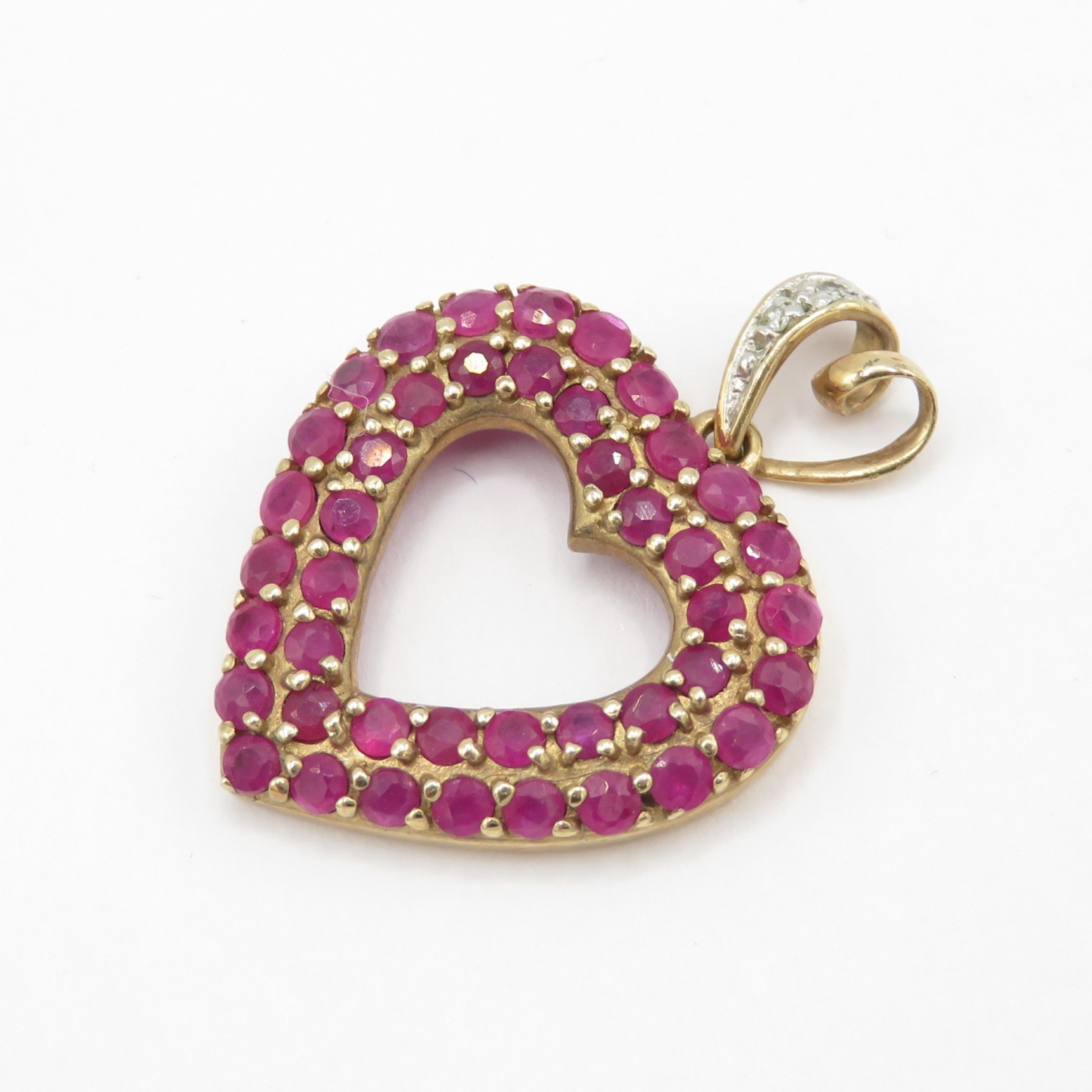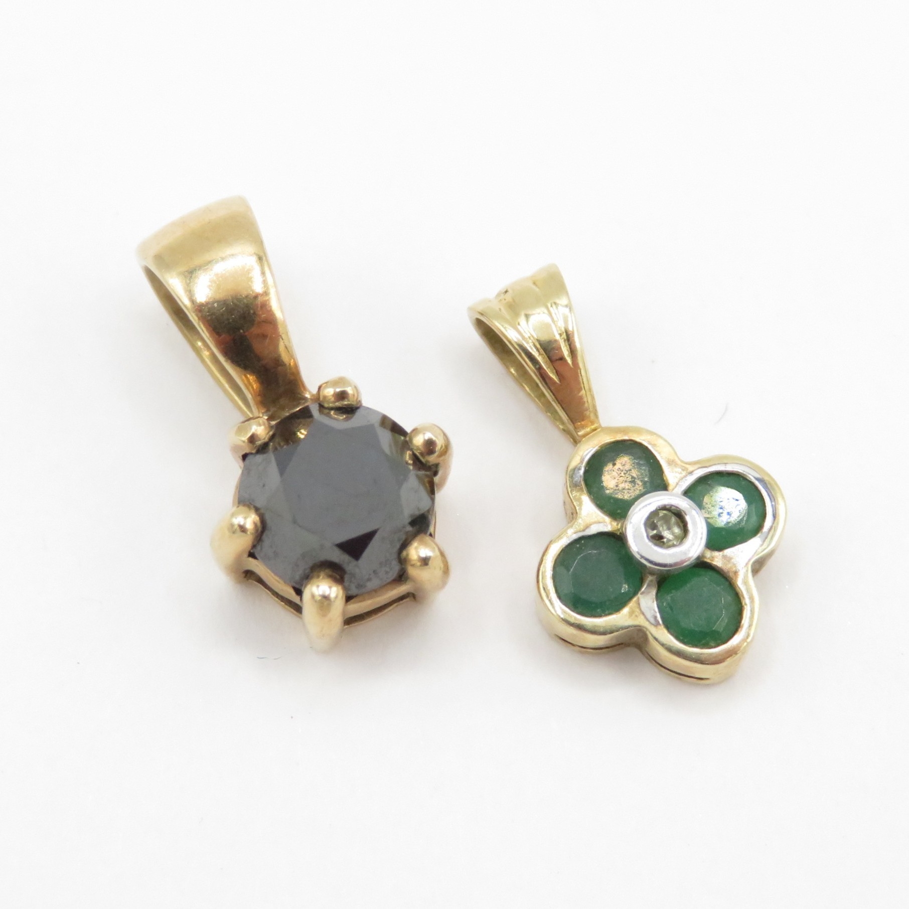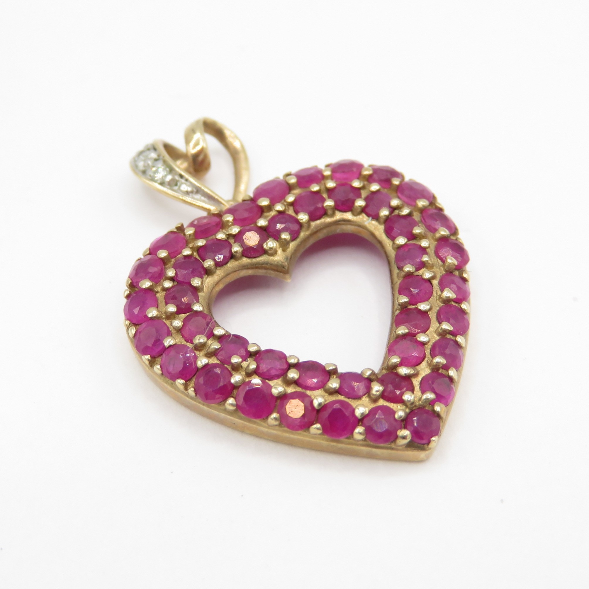 3x 9ct gold pendants including emerald and heart ruby (3.6g)