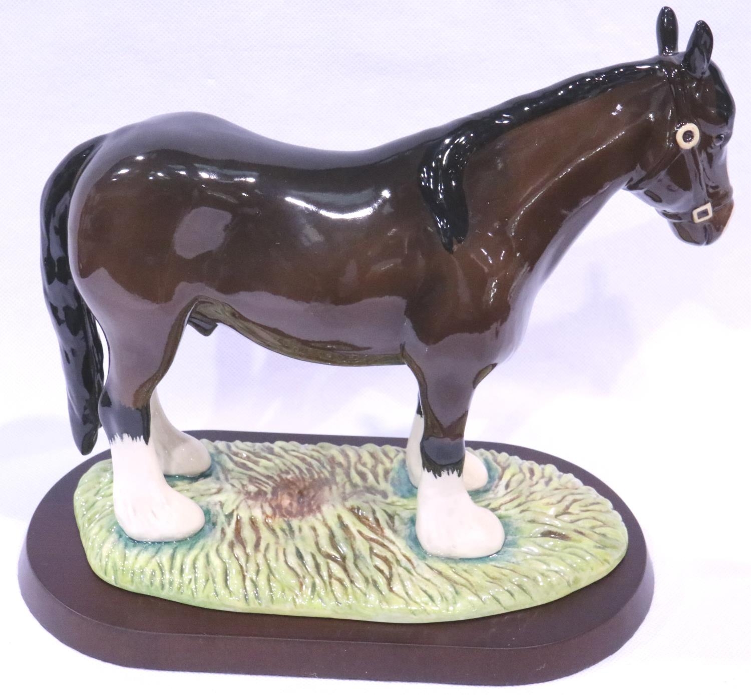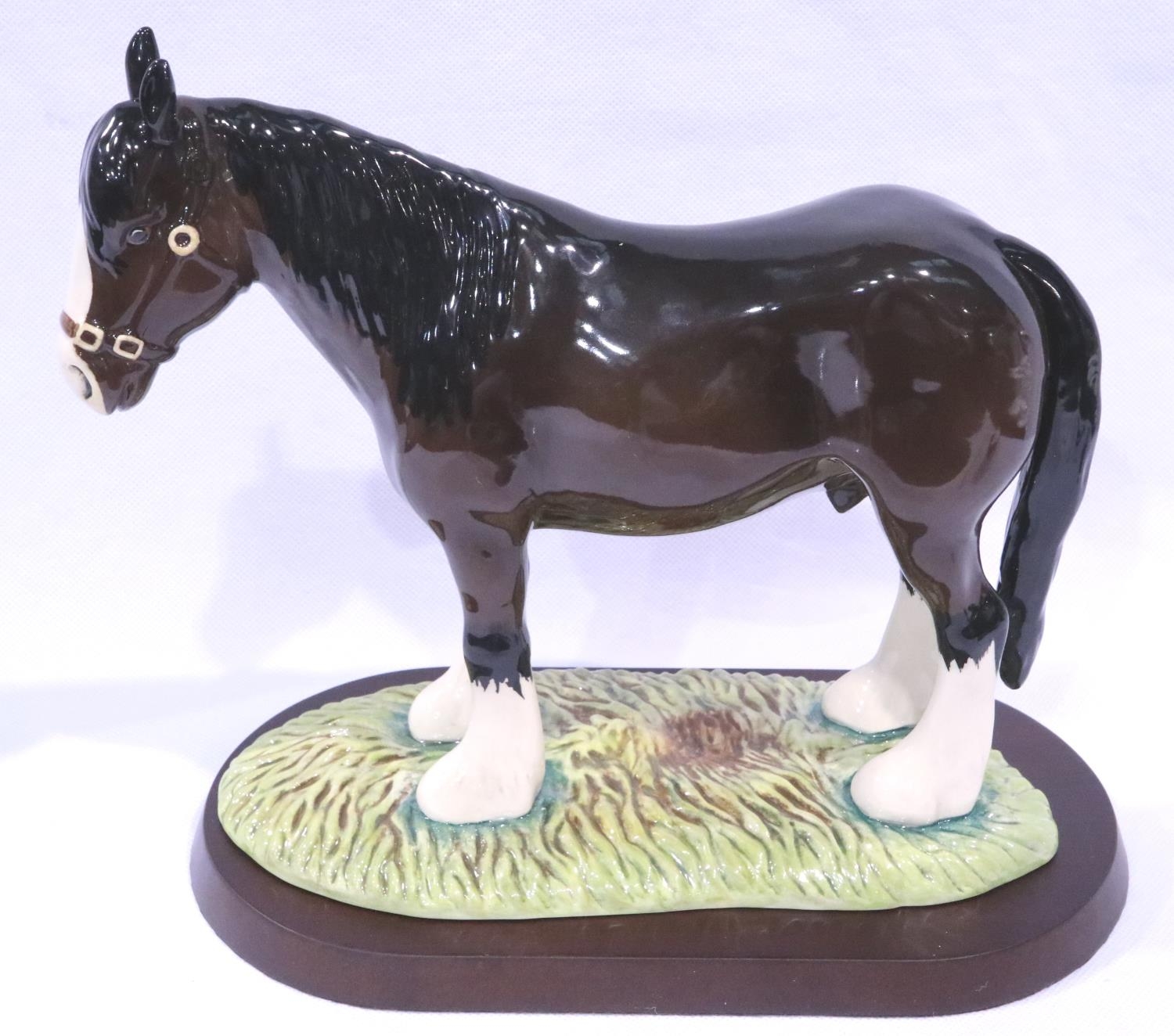 Royal Doulton shire horse on naturalistic base and plinth, boxed, H: 19 cm, L: 22 cm. No cracks, chips or visible restoration. P&P Group 2 (£18+VAT for the first lot and £3+VAT for subsequent lots)